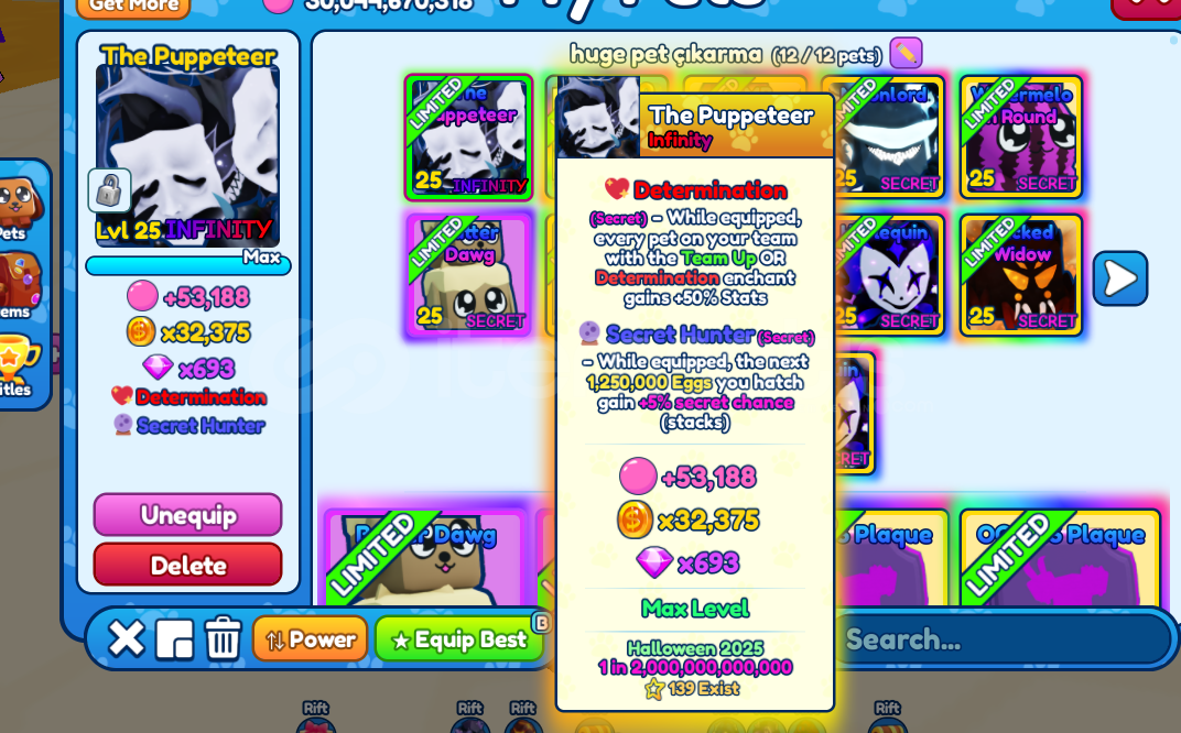 İSTEYENE AYRI AYRI DA SATILIR! İLANDA Kİ FİYAT GÖSTERİŞ AMAÇLIDIR FİYAT DM ÜZERİNDEN ANLAŞILICAKTIR!1x The Puppeteer İnfinity Shiny1x King Skull Secret1x Dumb Sinister Lord Secret Shiny1x Moonlord Secret Shiny2x Harlequin Secret Shiny1x Watermelon Round Secret Shiny 1x Creepy Overlord Secret Shiny3x OG BGS Plaque Secret Shiny3x OG The Overlord Secret Shiny1x Wicked Widow Secret Shiny 3x Butter Dawg Mythic Secret Shiny5x...