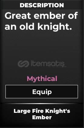 TYPE://SOUL [Large Fire Knight's Ember]Aktif olmadığım zaman da alabilirsiniz sadece şu zaman aralığında alırsanız beklemek zorundasınız üzgünüm.02.00 ÖÖ - 01.00 ÖS (Gece 02.00 ile Öğlen 13.00 arası