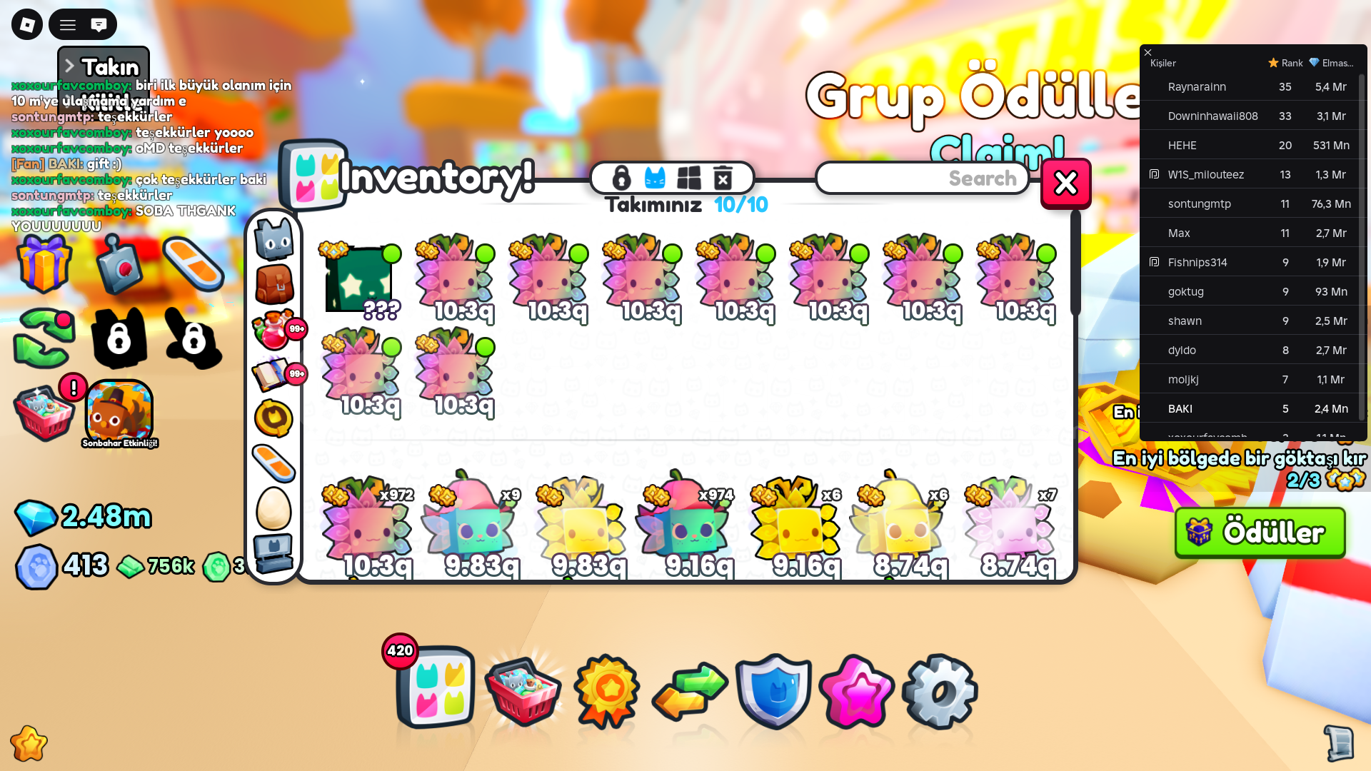 PS99 : 1 HUGE VAR TECHNO ADASINDA 10QLÜK BİR SÜRÜ PET VAR 7Q LÜKDE VAR TOPLAMDA 3 BİN DEN FAZLA VE 2M GEMS 24 TANE PET TAKABİLİYOR