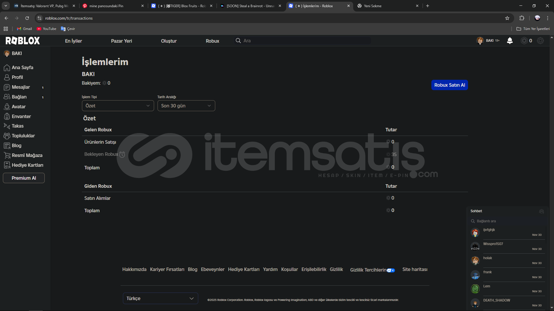 TEMİZ SORUNSUZ YENİ HESAB İSMİ SOBATRUST İNCELEMEK İSTİYENLER İÇİN İÇİNDEKİLER :STEAL A BRAİNROT : İÇİNDE BİR SÜRÜ DEĞERLİ VE FAZLA PARA VEREN PETLER VAR ÖRNEK VERİCEK OLURSAK CHİCLETERİA 3.5M GRAPİUS MEDUİSSİ 8.5M VE DAHA FAZLASI FĞRAFLARDA VAR BAKABİLİRSİNİZBLOX FRUİT : 853 LEVEL BUDDHA KULLANIYOR AMA ENVANTER&...