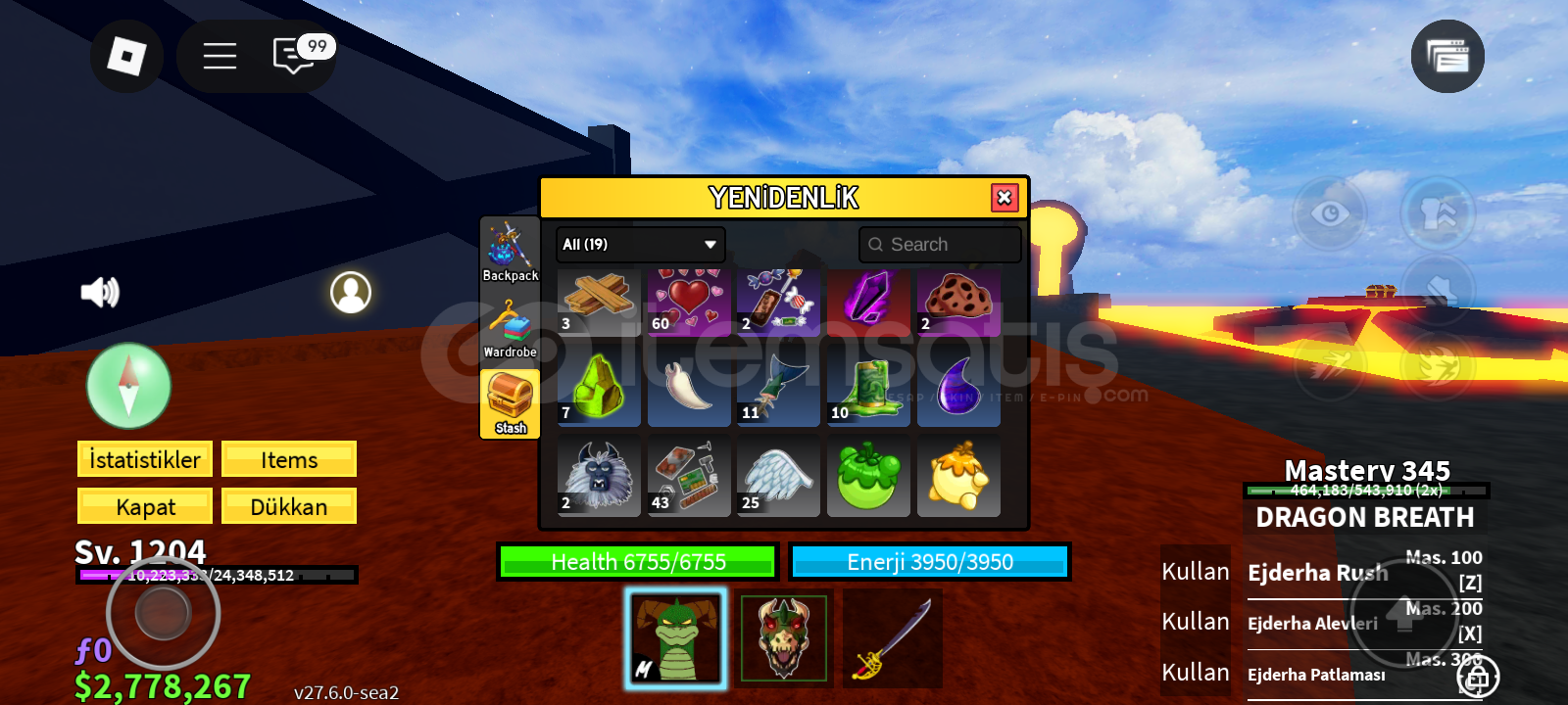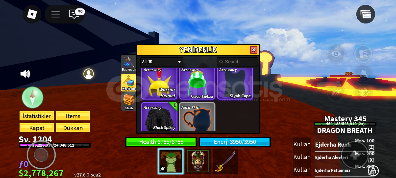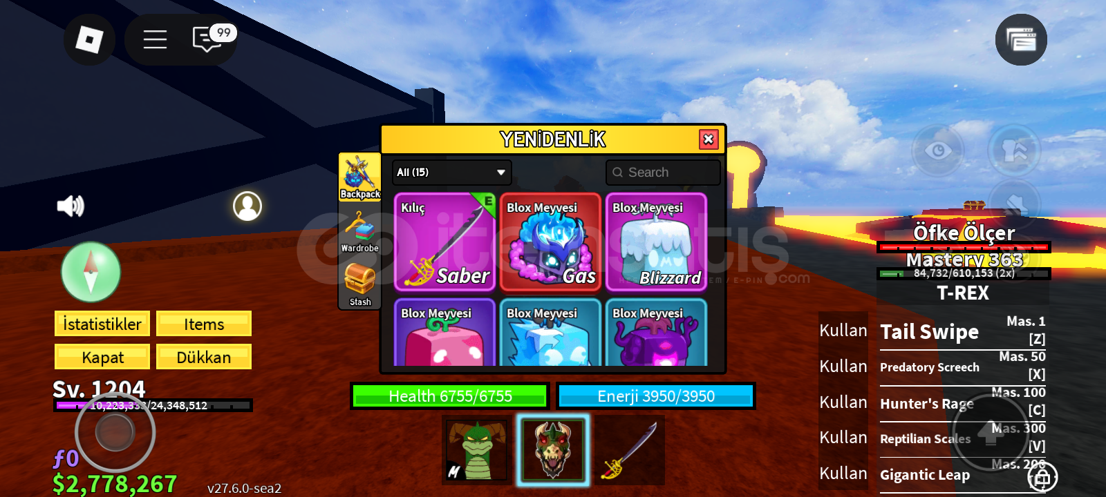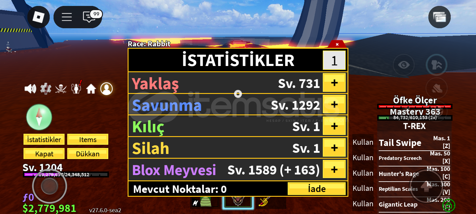 Not:Bu hesabın pahalı olma sebebi 2 gamepasse sahip olması ve storesinde gass olmasıdırBu hesap 1200 leveldir storasinde gass vardır perm bladei vardır trex 350 masterydir kasmalık hesaptır rabbit v3 ve 500k para bulunmaktadır