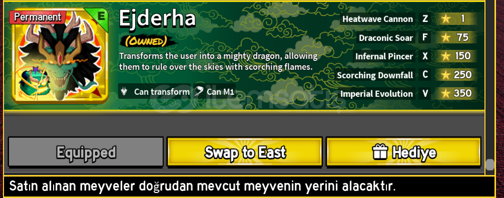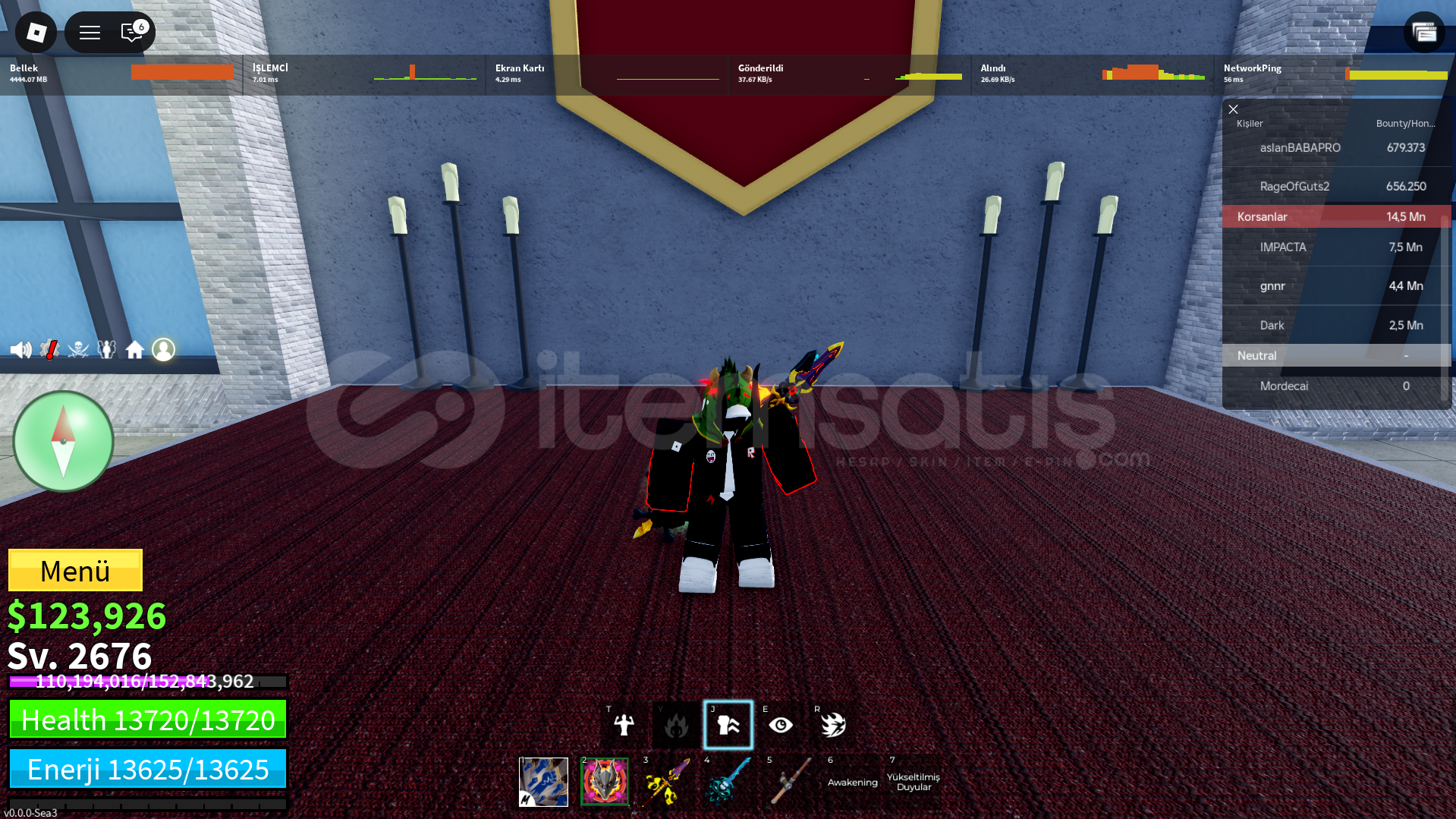 hesapta perm dragon vardır 600 masteryghoul v4 vardırdragonheart gibi güzel kılıçlar bulunmaktadırskull guitarsanguin art harici her still bulunur30k fragmenti vardır christmas güncellemesindeki tekne vardırhesapta güzel meyveler bulunmaktadır4,3 M bounty vardır tam pvp hesabı zatenhesap 1 günlüğüne acil paraya ihtiyacım olduğu için indirimde