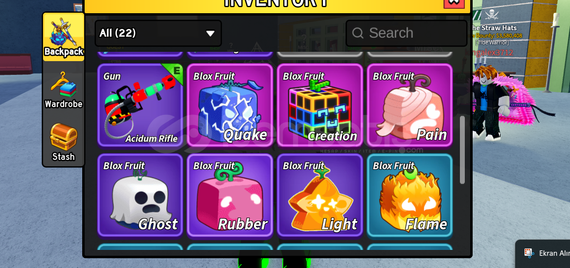 hesap oldukça güzeldir random hesap alıp saçma hesaplaral oynamak yerine bu hesabı alabilirsiniz.öncelikle hesapta venom fruit yenmiştir.god human vardır.bir kaç güzel kılıç vardır. (bazılarının tüm skilleri açıktır.)güzel aksesuarlar vardır. (dough king kesilmiştir.)hesapta görseldeki legendary meyveler vardır.VİDEO KAYDI OLMADAN İADE YAPAMAM!sat&...