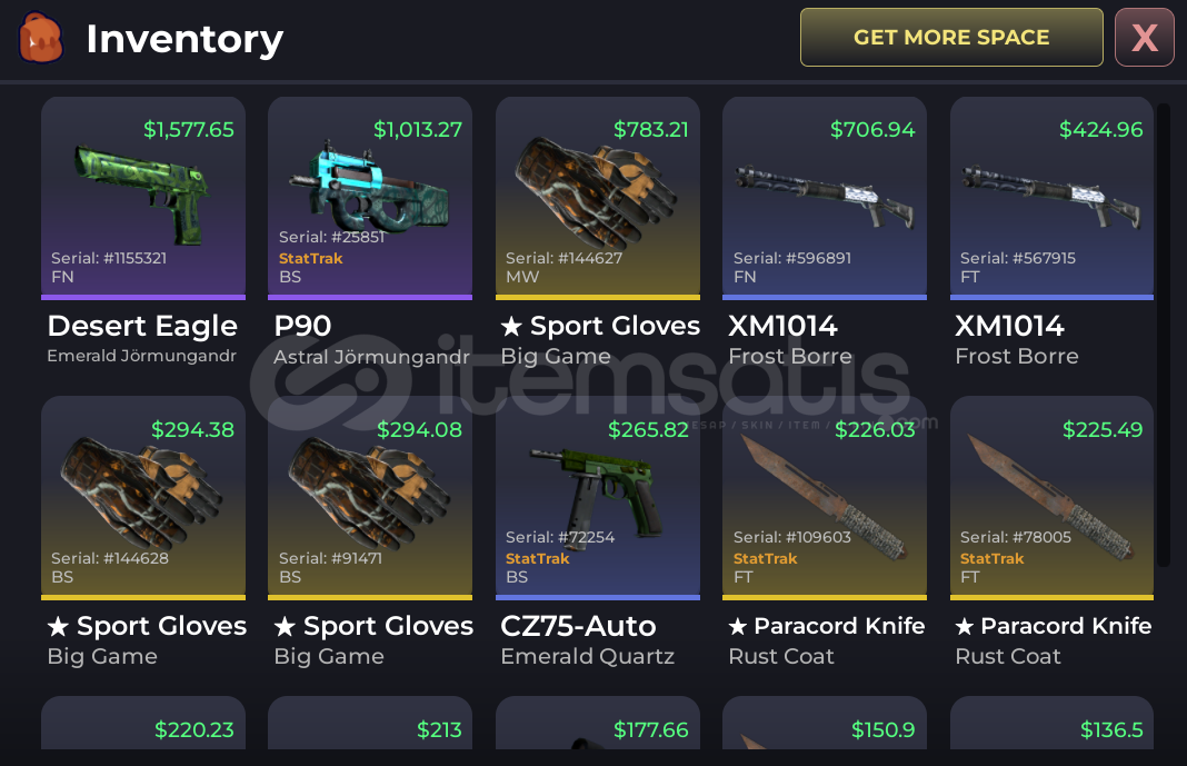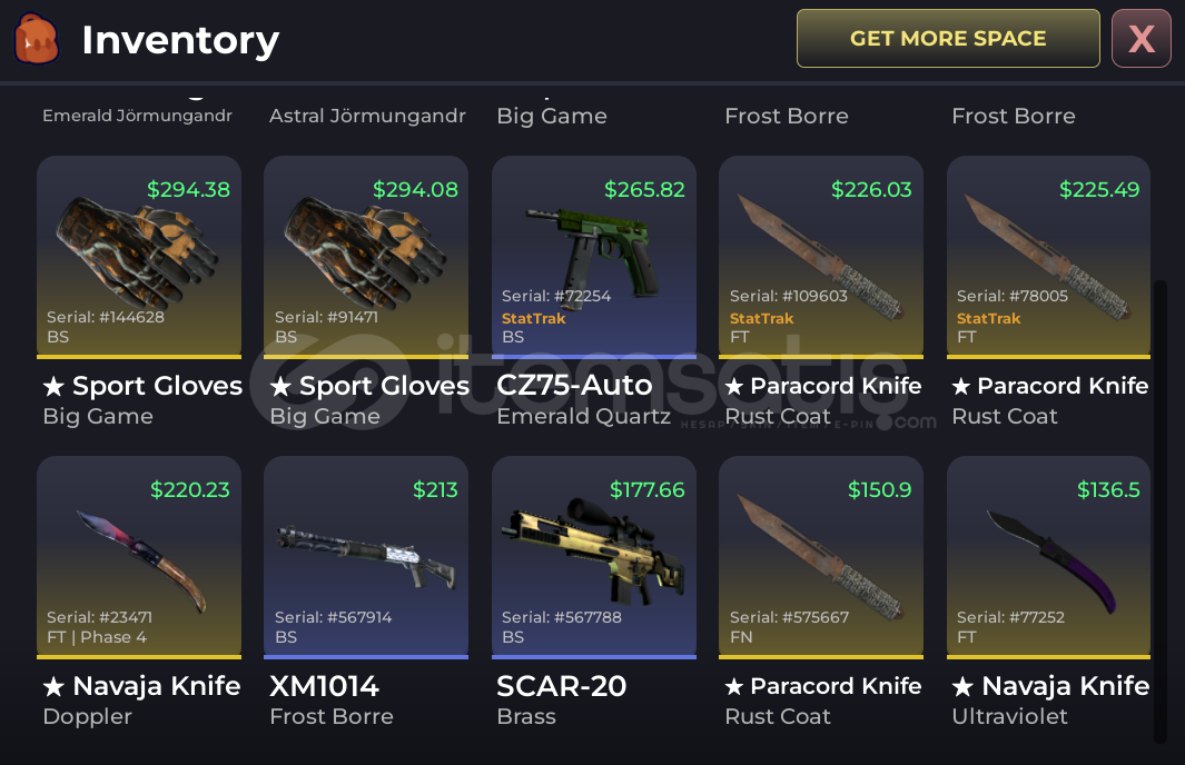 Toplam value: 6789.12Oyun içerisinden trade yolu ile teslim edilecektir.Satın almadan önce satıcı ile iletişime geçiniz. Aktif olmayabilirim.Pazarlık vardır.F0toğrafta görülen bütün itemler ilan içerisindedir.isterseniz tek bir ürünüde alabilirsiniz, ancak ilan bütün envanter için geçerlidir