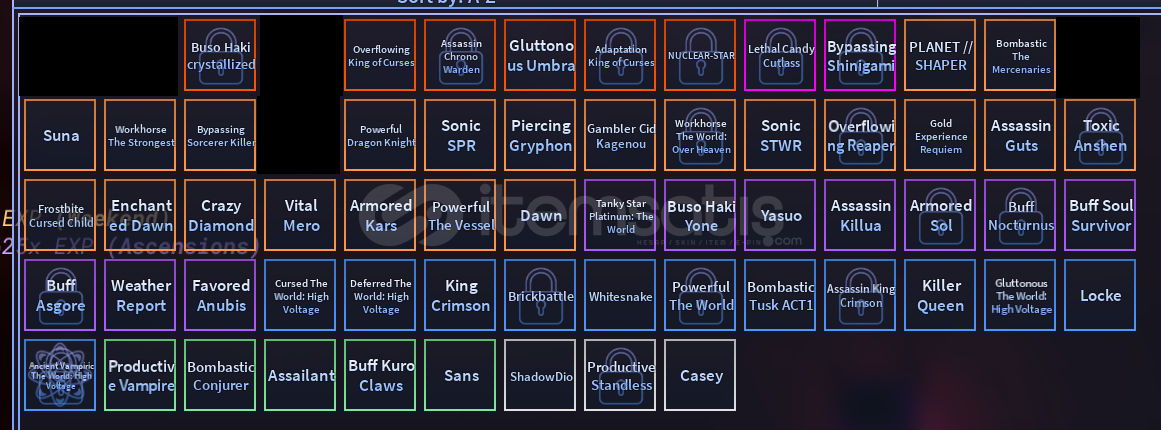 Universallar, Unobtainablelar, Limitedlar, Eventler, Traitler, Mountlar ve Kill effectleri mevcut.