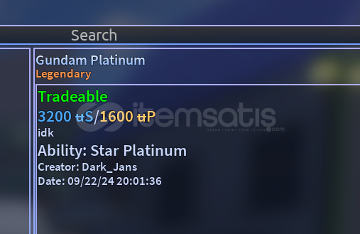 Legendary tier bir skin olan Gundam Platinum için aşırı nadir bir renk...Unusual Skinlerin değerleri ve olasılıkları farklıdır ve daha değerlidir.