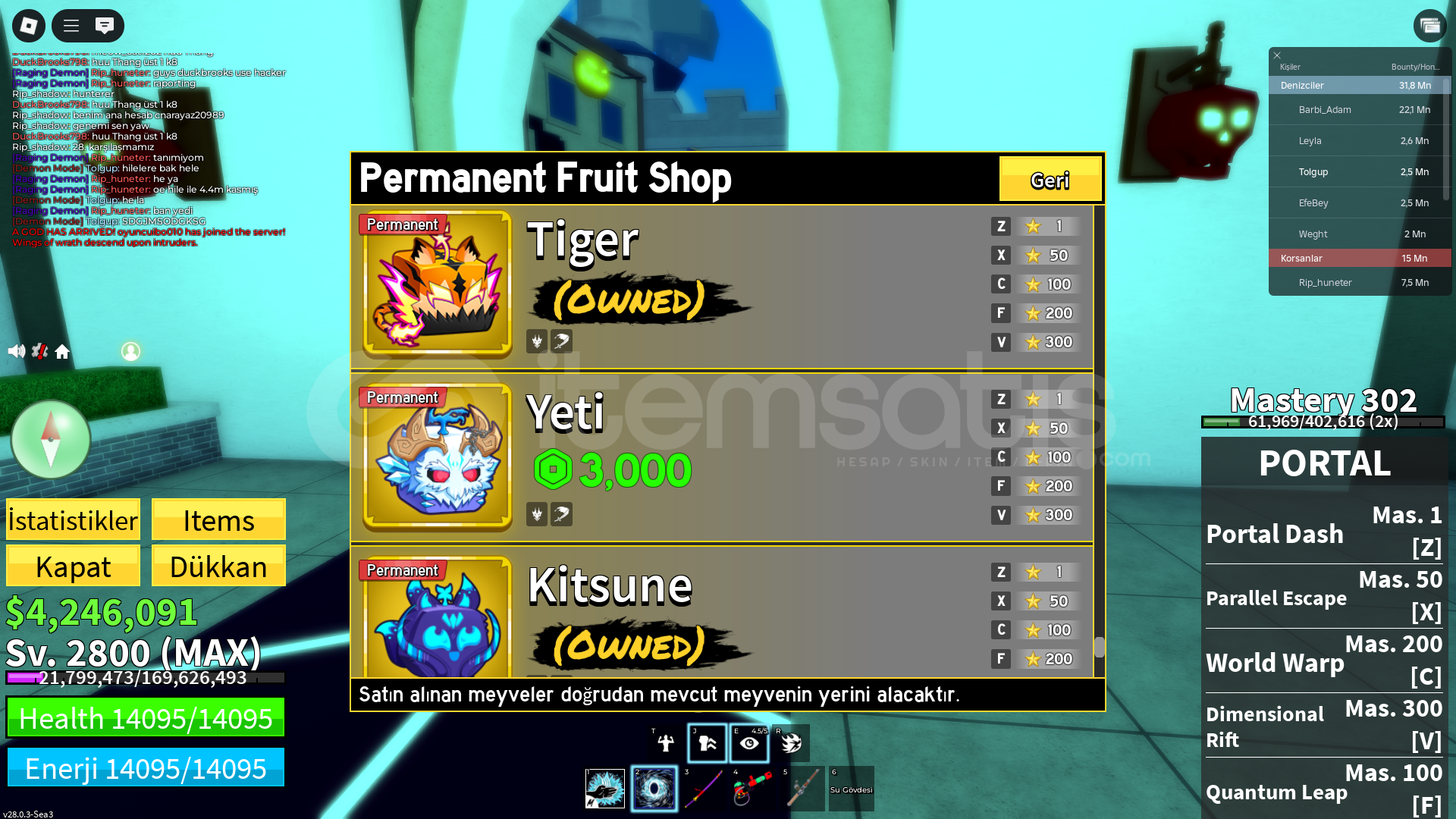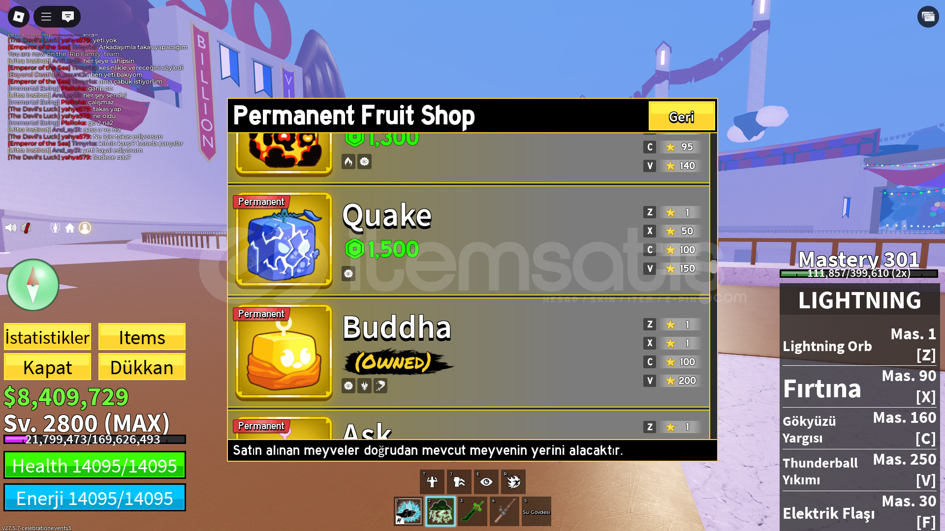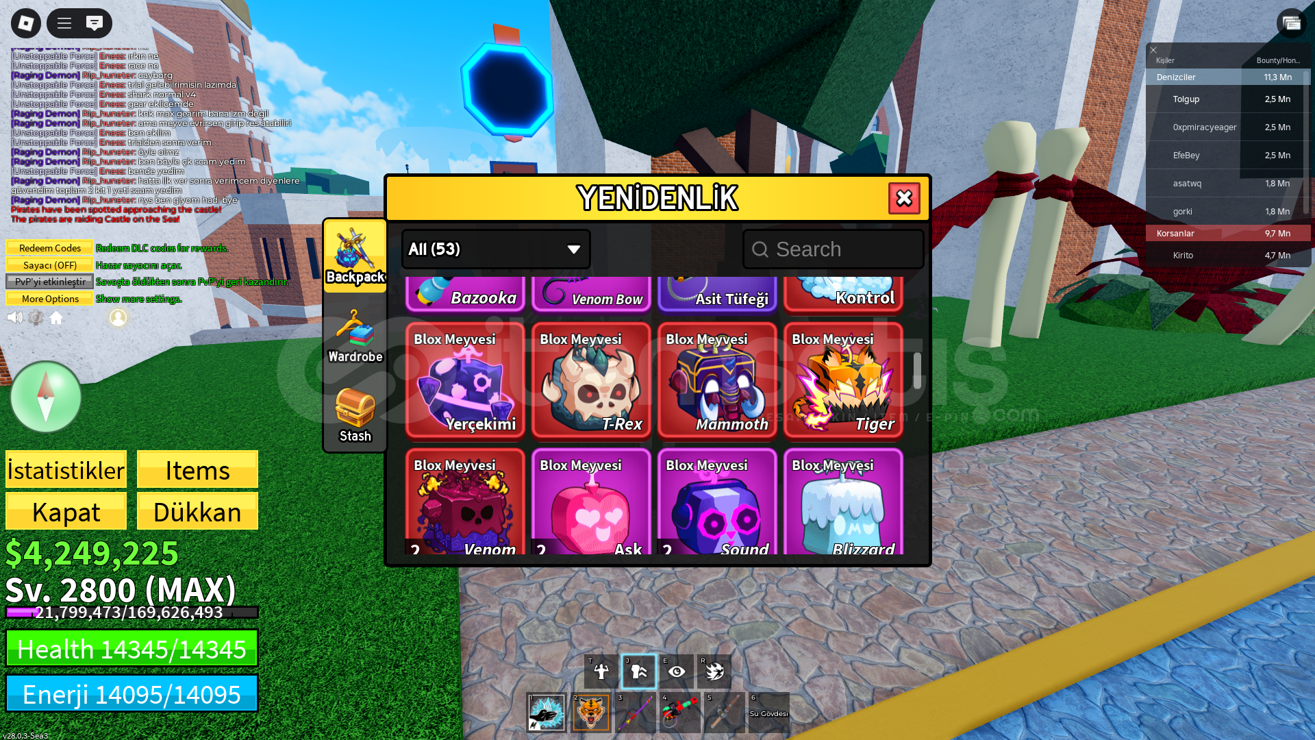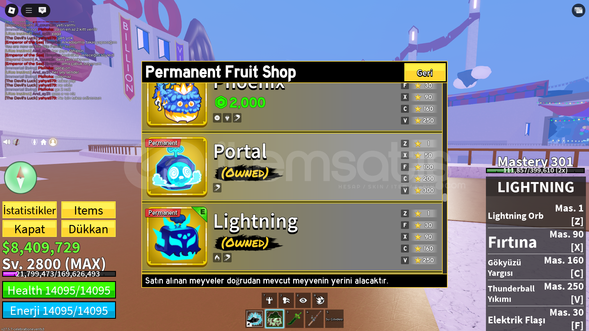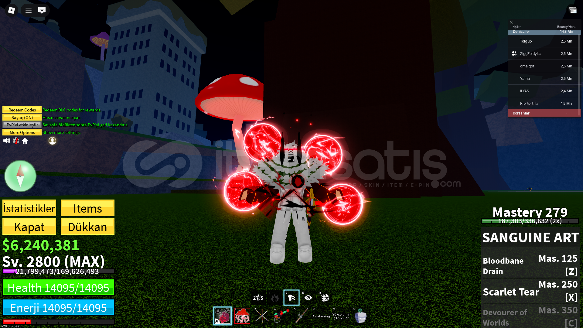 Abartılmadıgı sürece Pazarlıga Açığız Teklif YapabilirsinizHesap Max Seviyedir Bütün Dövüş Stilleri AçıktırSanguine Art Da açıktırV4 Ghoul VardırTriple Cursed Katana Ve Dagger nadir kılıcları bulunur10k dan fazla robux yatırılmıştırLeviathan Hearth BulunurHesabın Envanterinde Tiger 2xvenom gravity mamoth t rex ve kontrol vardırhesaptaki ...