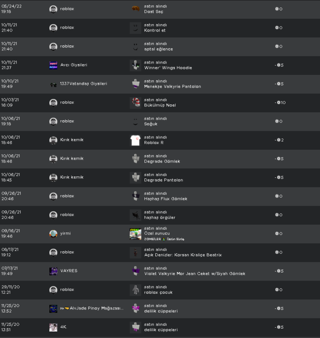 • Hesapta Arsenal Murder mystery 2 ve lifting simulator gibi birçok oyun kasılmıştır.