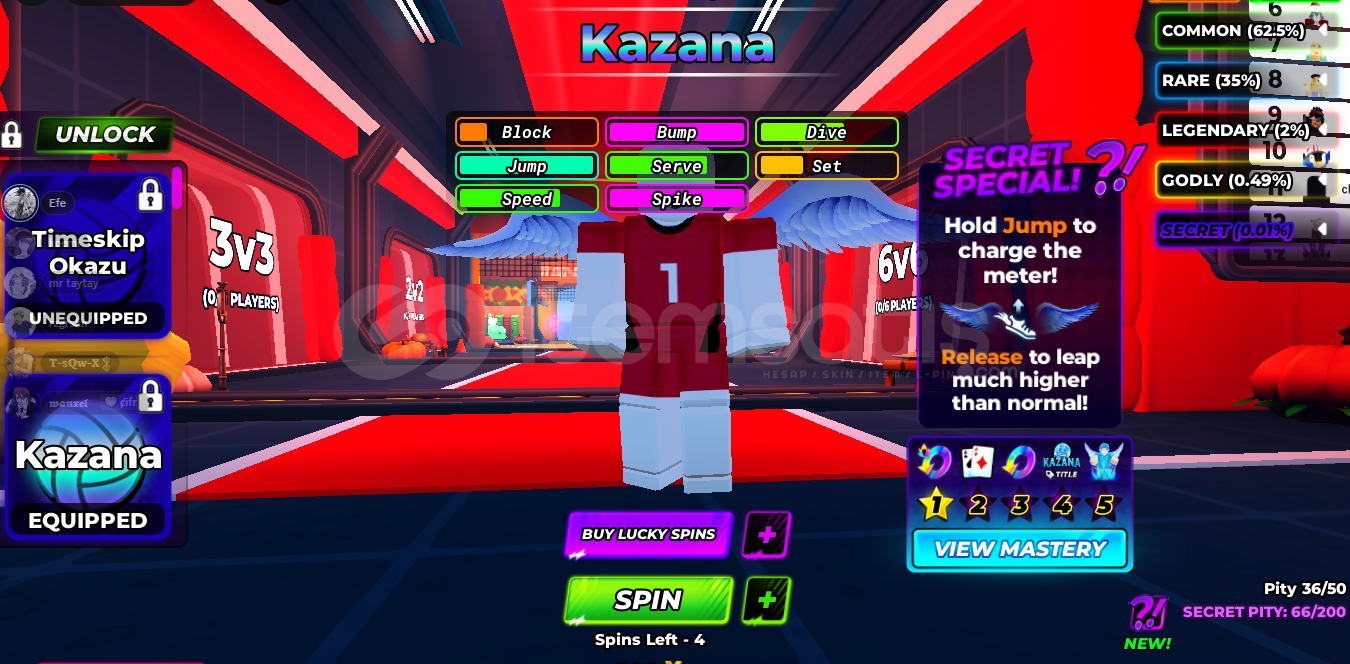 Volleyball Legends 70 Lvl olan hesabımda 5/6k totelli Tso Ve Kazana Bulunmaktadır.Hesabın içinde One Fruit Sim'de Sword Of Solis...