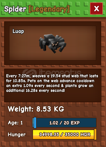 TİTANİC SPİDER Satışıdır. Grow a Garden(GAG) oyunudur.