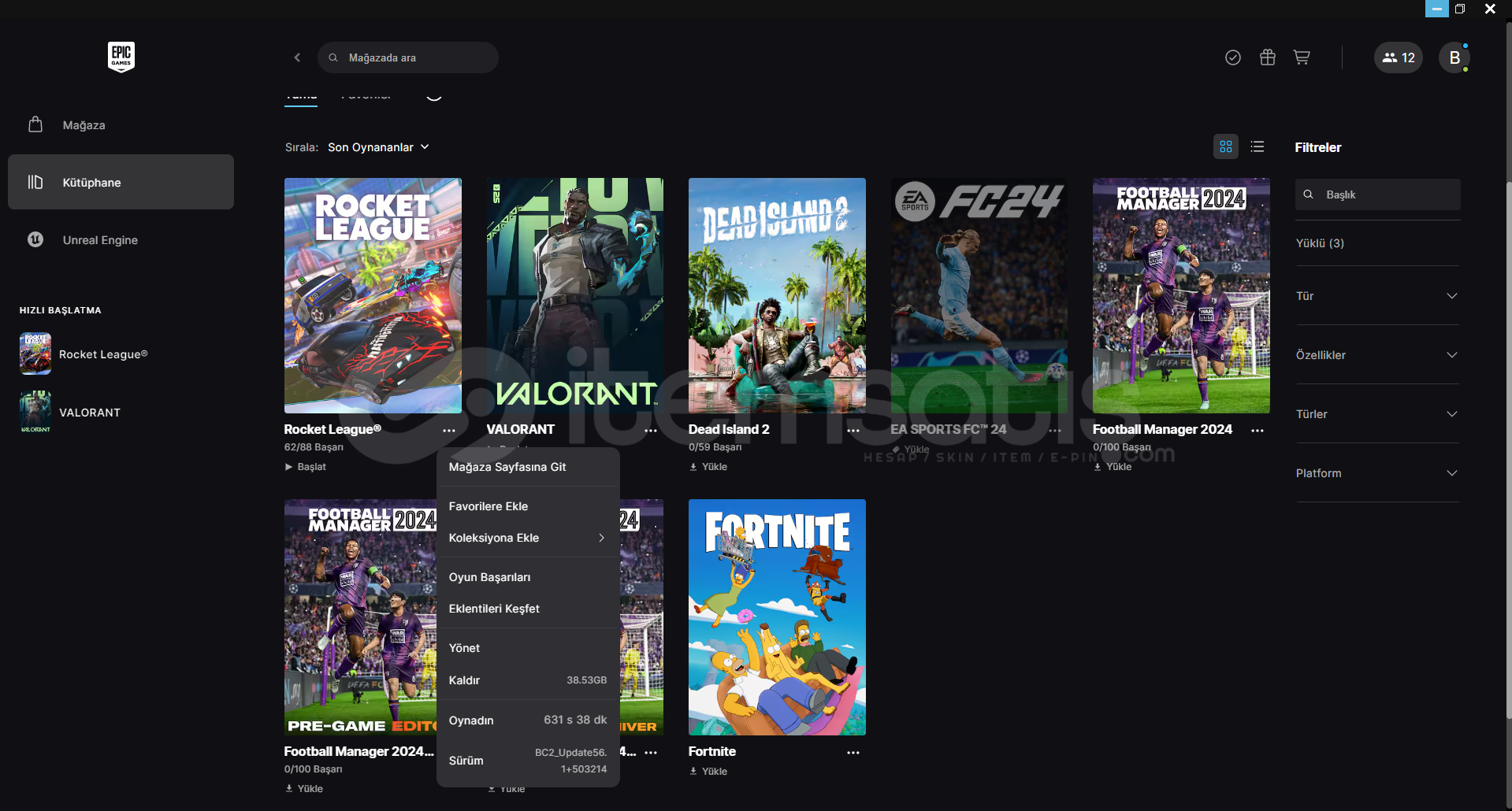 Rocket League dolu hesap