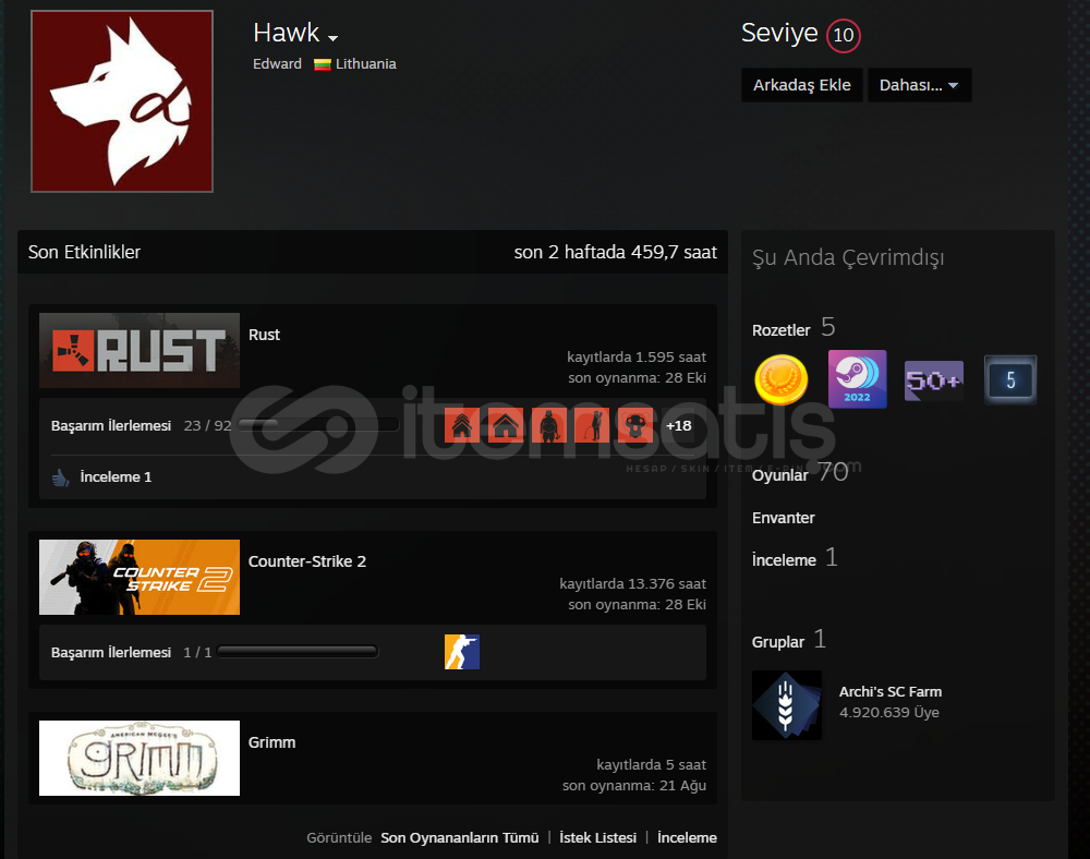 BANSIZ + TEMIZmail ile teslim edilecekAktif olmasam bile satın alabilirsinizhesap anında teslim edilecektir1595 SAAT rust + 13.376 cs2 afk68 SKINhesap steam profili : https://steamcommunity.com/profiles/76561199018748993
