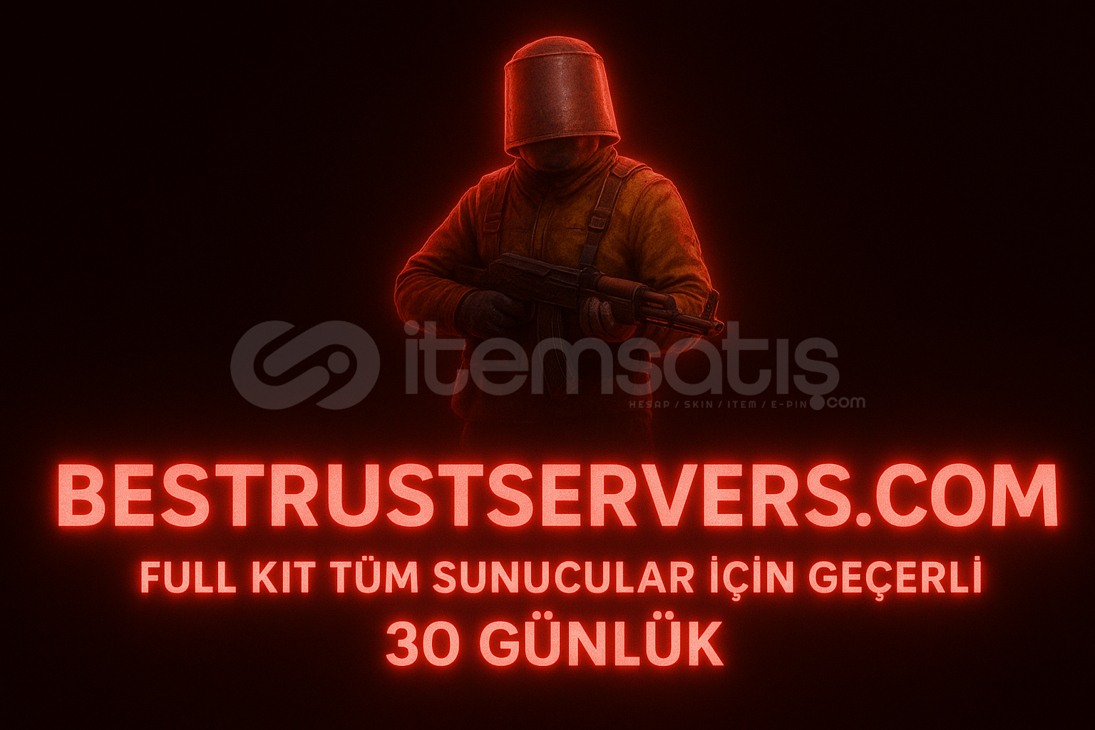 Best Rust Server sunucusunda sunduğumuz özel kitlerin toplam değeri 2000 Euro! Şimdi, sadece sizlere özel olarak, 30 günlük FULL KIT fırsatını yalnızca 259 TL'ye sunuyoruz.