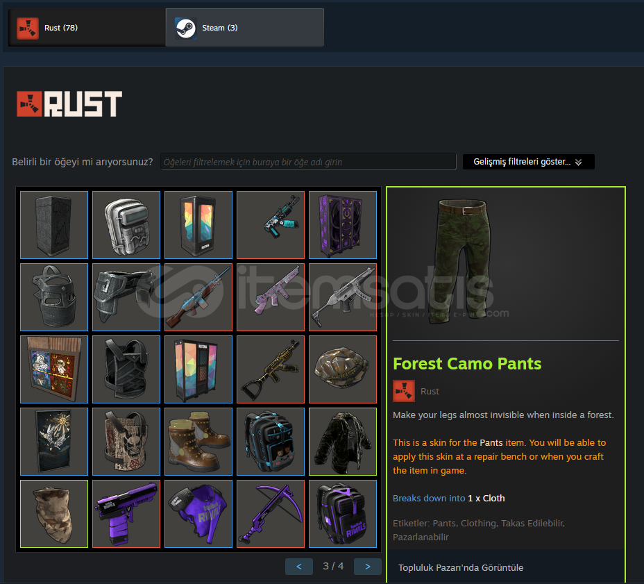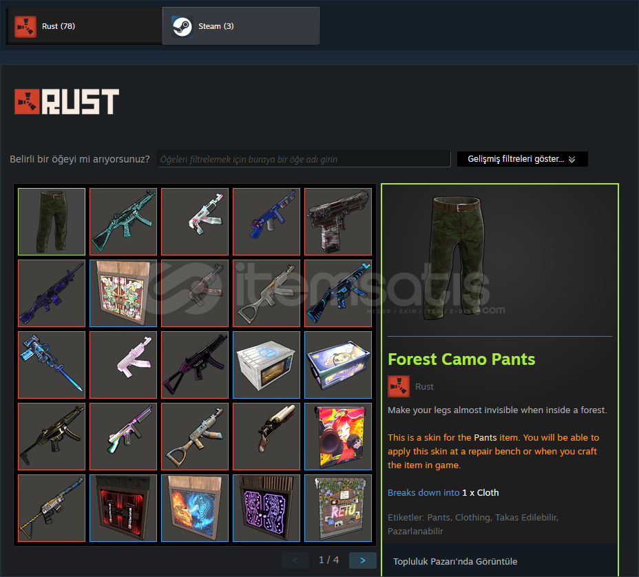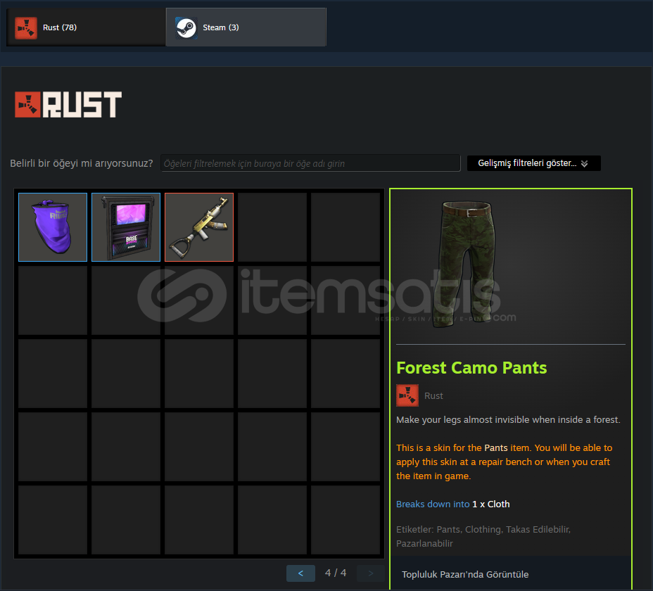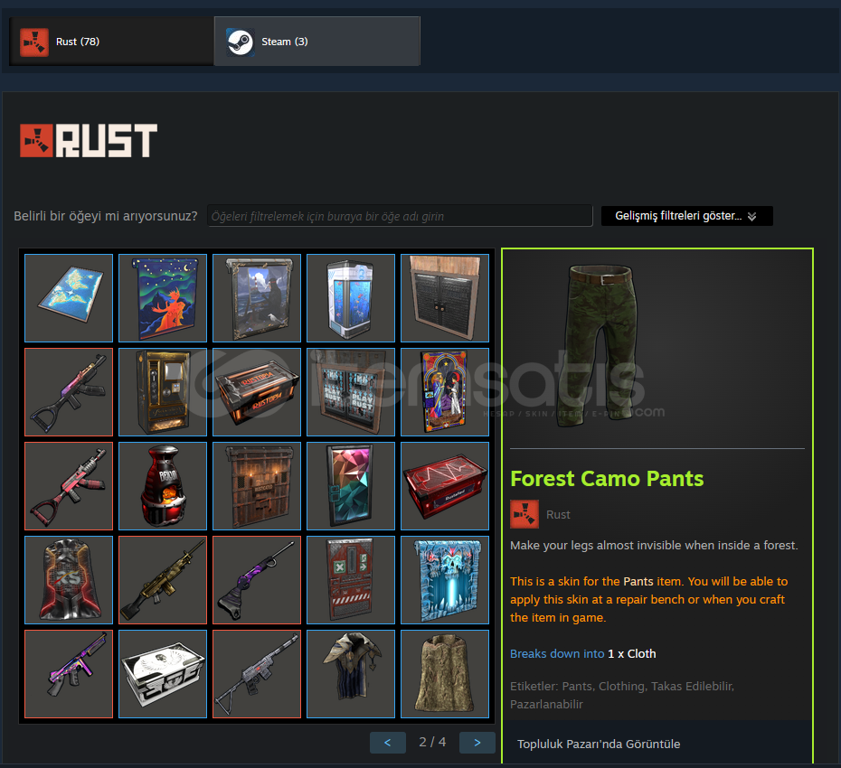 HESAPTA 78 ADET RUST SKINI BULUNUR