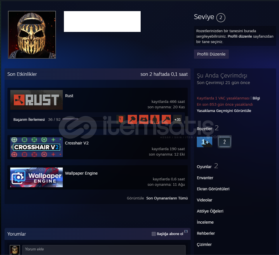 HESAPTA 78 ADET RUST SKINI BULUNUR CS VAC BANLIDIRALICISINA HAYIRLI OLSUN