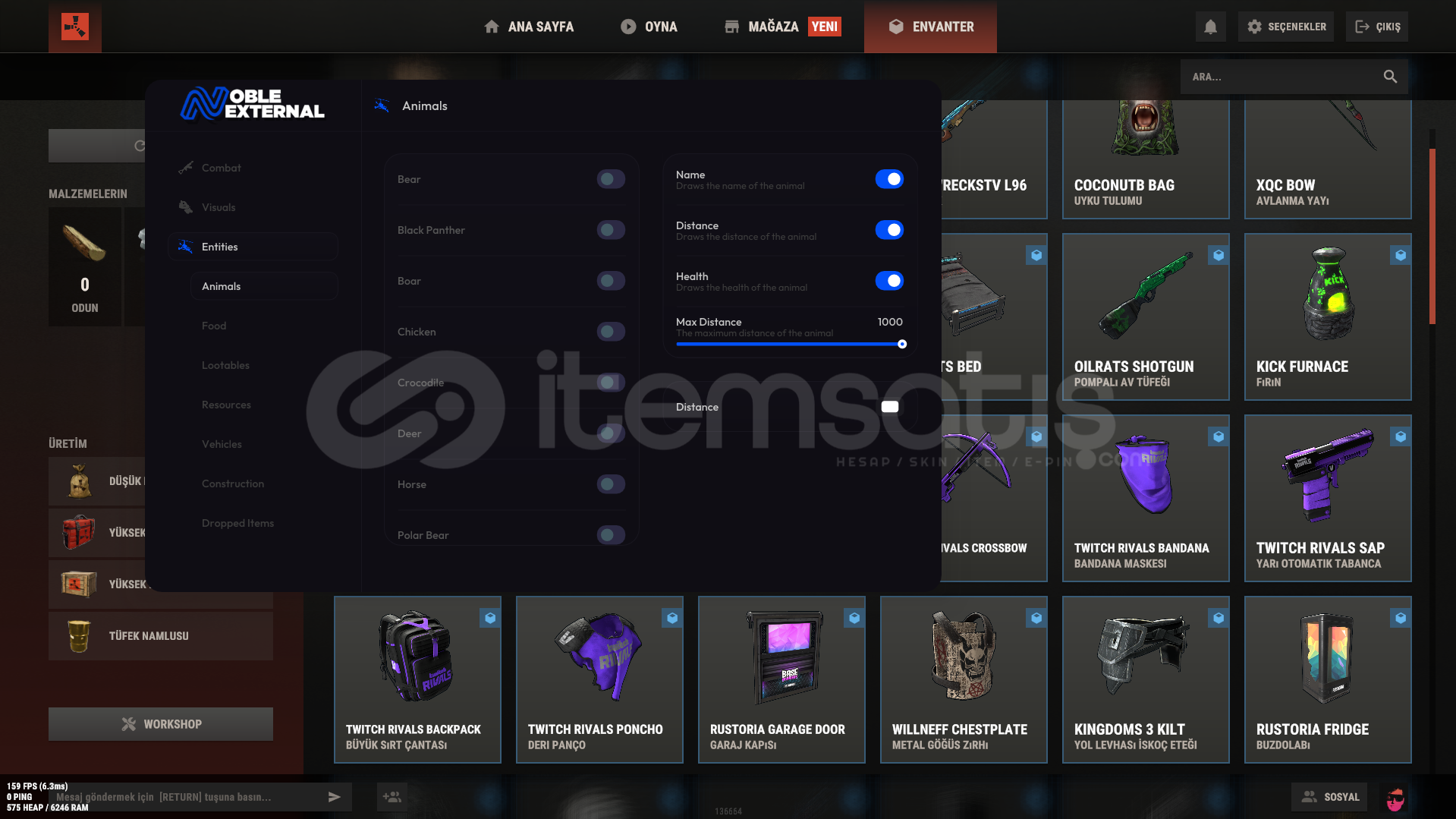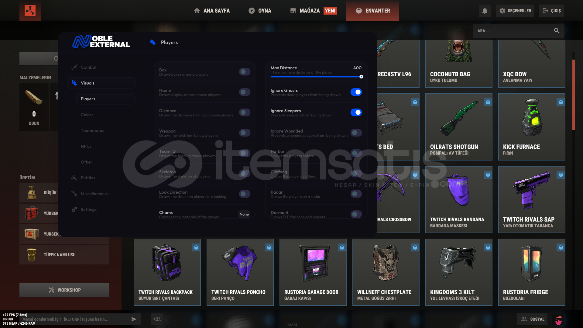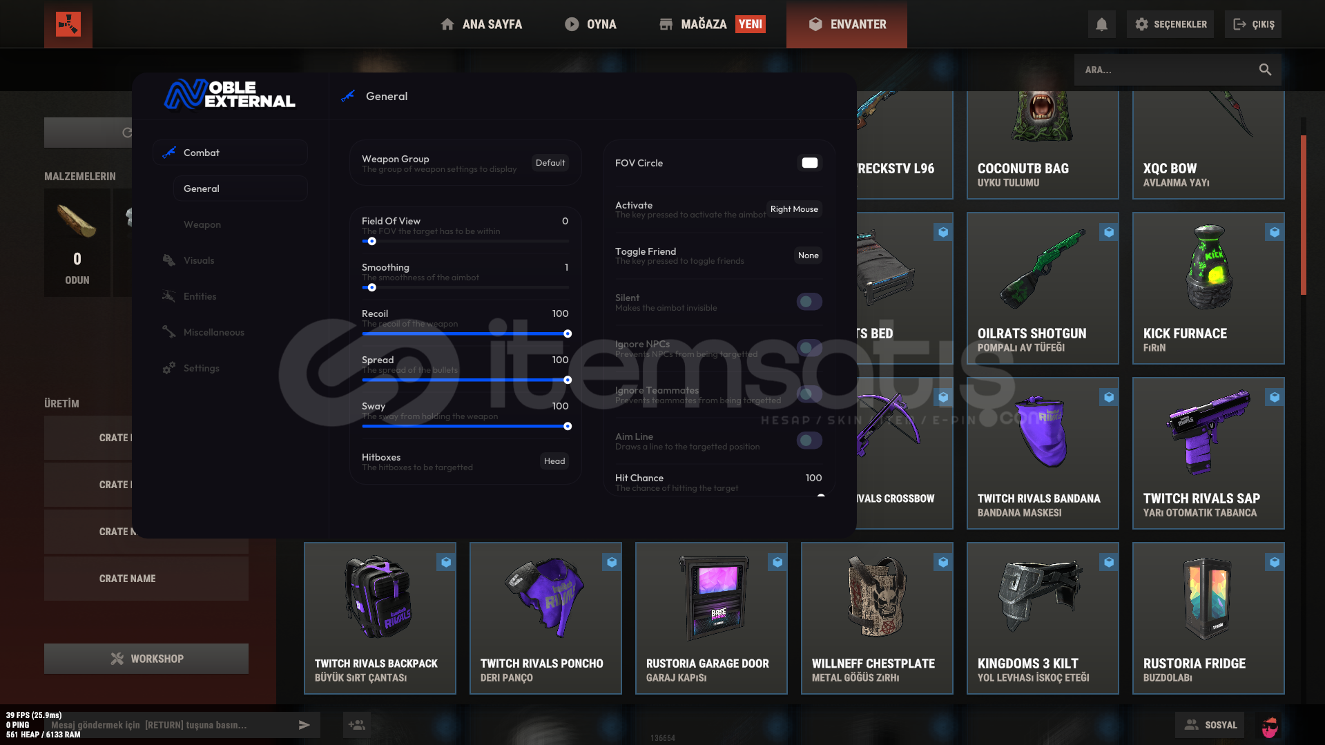 Noble Rust External Lifetime üyeliğim mevcut almak isteyen kişiler var ise iletişime geçebilirsiniz piyasdadaki en kusursuz donanımlı yazılımlarından biri artık kullanmayacagım için birine devredeceğim Normal lifetime sınırsız üyelik fiyatı 200$ olan yazılım ve diğer gereklilikleri ile birlikte 150$ a devredeceğim bilgi için buradan veya discord üzerinden yazabilirsiniz