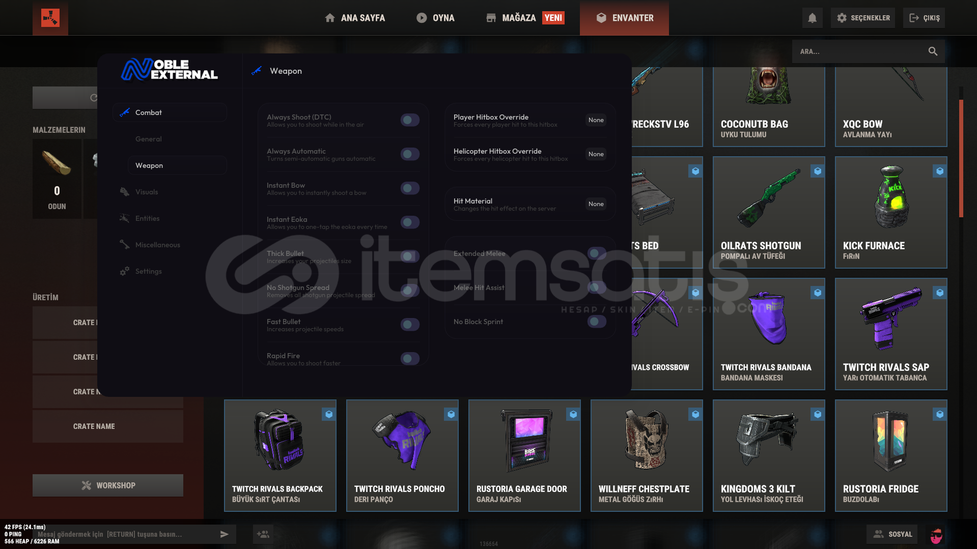 Noble Rust External Lifetime üyeliğim mevcut almak isteyen kişiler var ise iletişime geçebilirsiniz piyasdadaki en kusursuz...