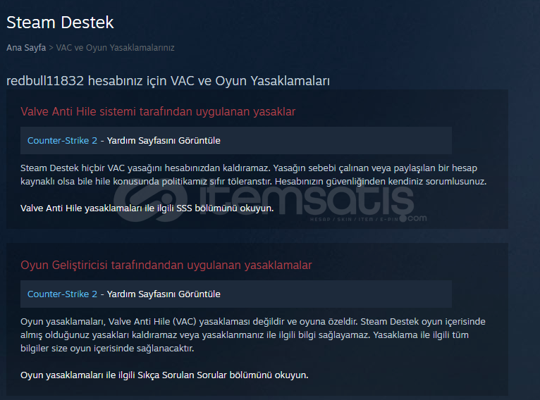 Hesap mail devirlidir vac ban cs2 den dir başka bir sorunu yok envanter de twich drop var sadece