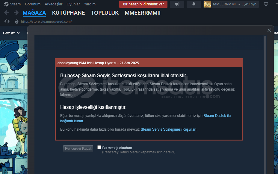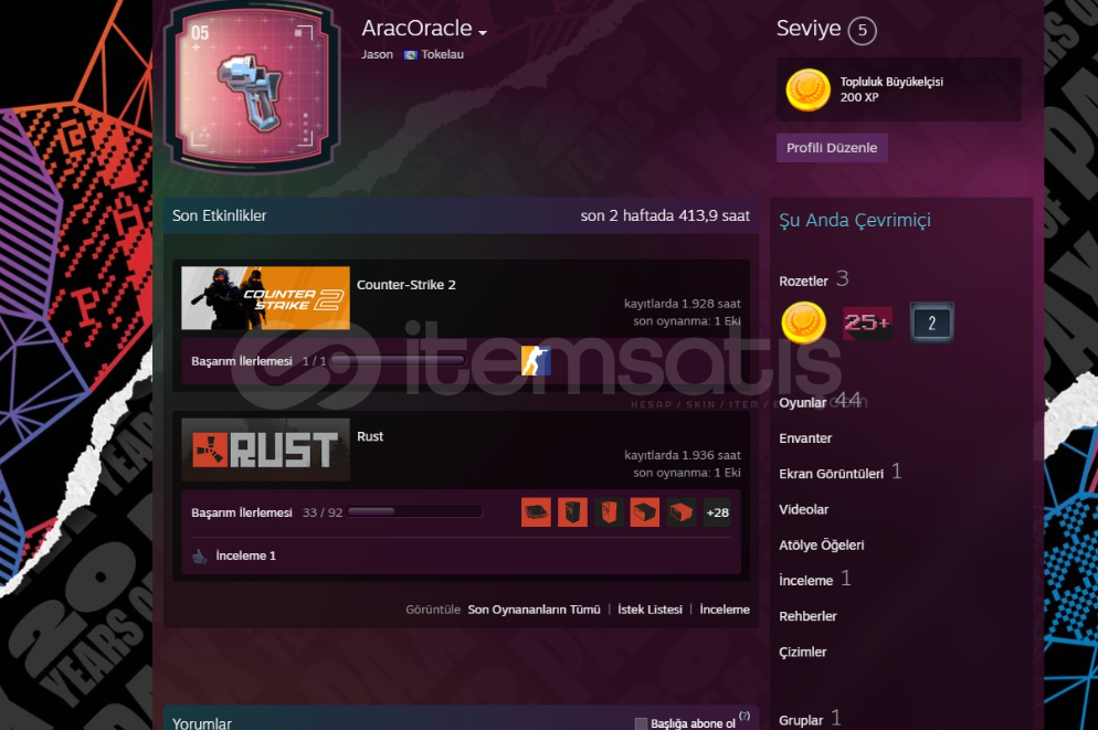hesapta mail bütün bilgileri verceğim sadece satın alım vb şeylerı yapamıyorsunuzhesap gizli gözüküyor onun dısında HİÇBİR SORUN YOKrustı rahat sekilde oynayabiliyorsunuz OTOMATİK TESLİM DİREKT ALABİLİRSİNİZ BASKA SORUNU YOK+80 skin bulunamkta