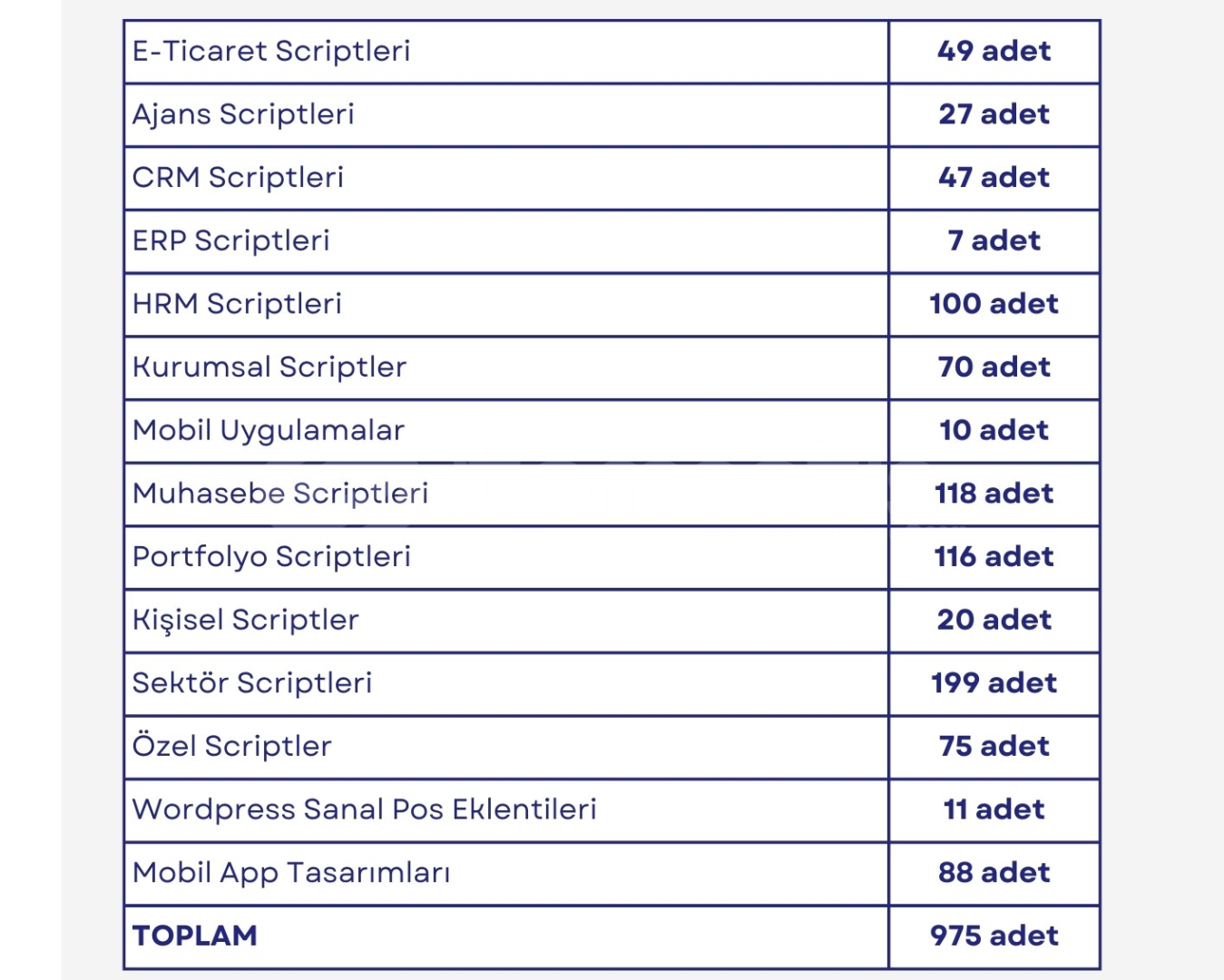 • 5380+ hazır web sitesi, PHP script ve admin paneli
