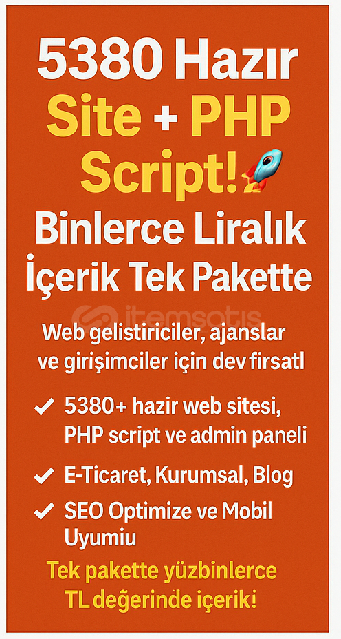 5380 Hazır Site + PHP Script! 🚀 Yüz Binlerce Liralık İçerik Tek Pakette!Web geliştiriciler, ajanslar ve girişimciler için dev fırsat!📦 İçerik:5380+ hazır web sitesi, PHP script ve admin paneliE-ticaret, kurumsal, blog, emlak, araç, sosyal medya, CRM ve daha fazlası⚙️ Hepsi düzenlenebilir, mobil uyumlu ve SEO optimize!Bu kadar büyük bir arşivi bir araya getirmek yıll...