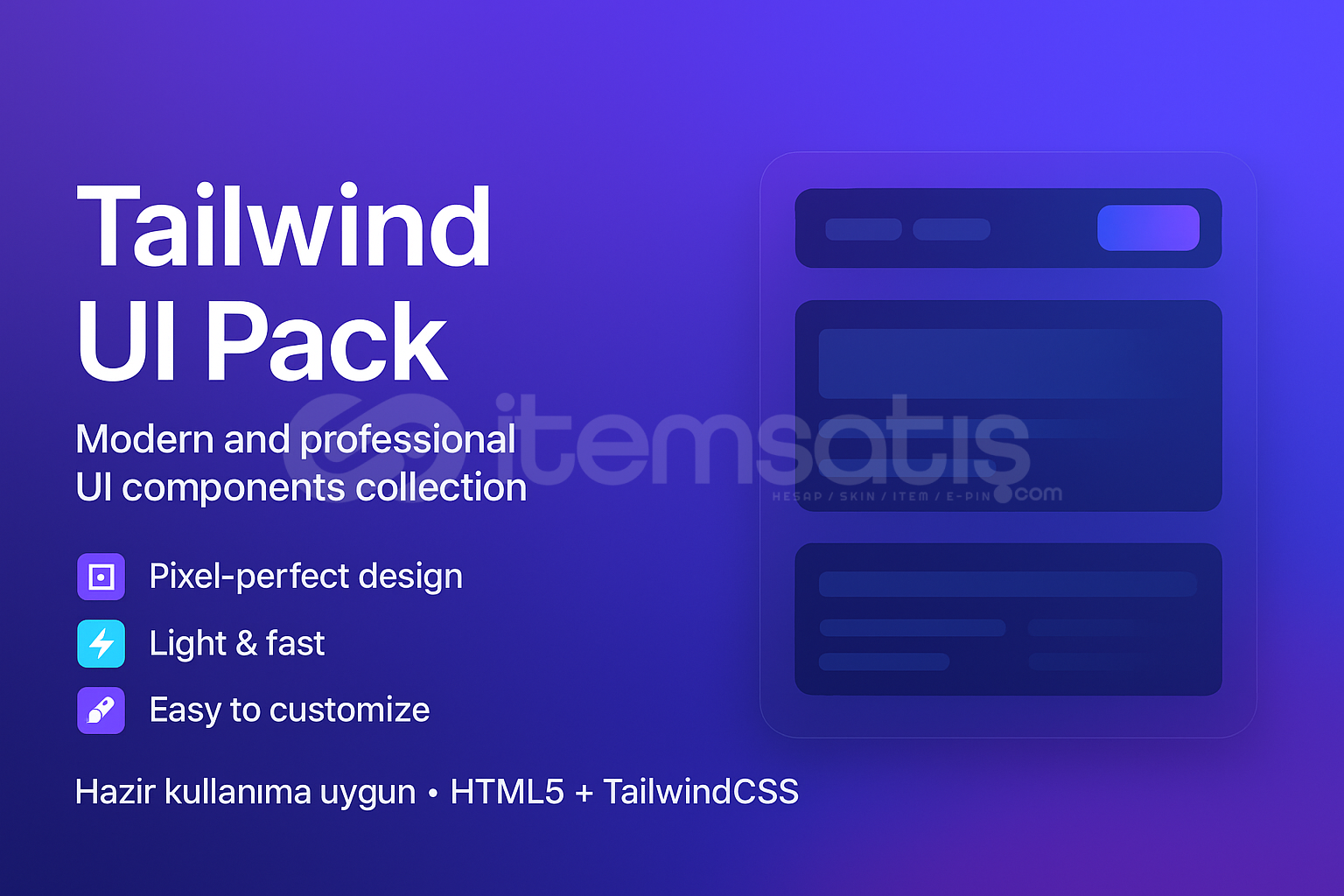 Web projelerinde hız, modernlik ve profesyonellik istiyorsan, bu paket tam sana göre!Tailwind UI Pack, saf HTML5 ve TailwindCSS kullanılarak hazırlanmış, tamamen optimize edilmiş, hazır kullanılabilir bir bileşen koleksiyonudur.🚀 Öne Çıkan Özellikler🎨 Pixel-perfect design: Her piksel özenle hizalanmış, kusursuz bileşen yapısı⚡ Light & fast: Minimal CSS kullanımı s...