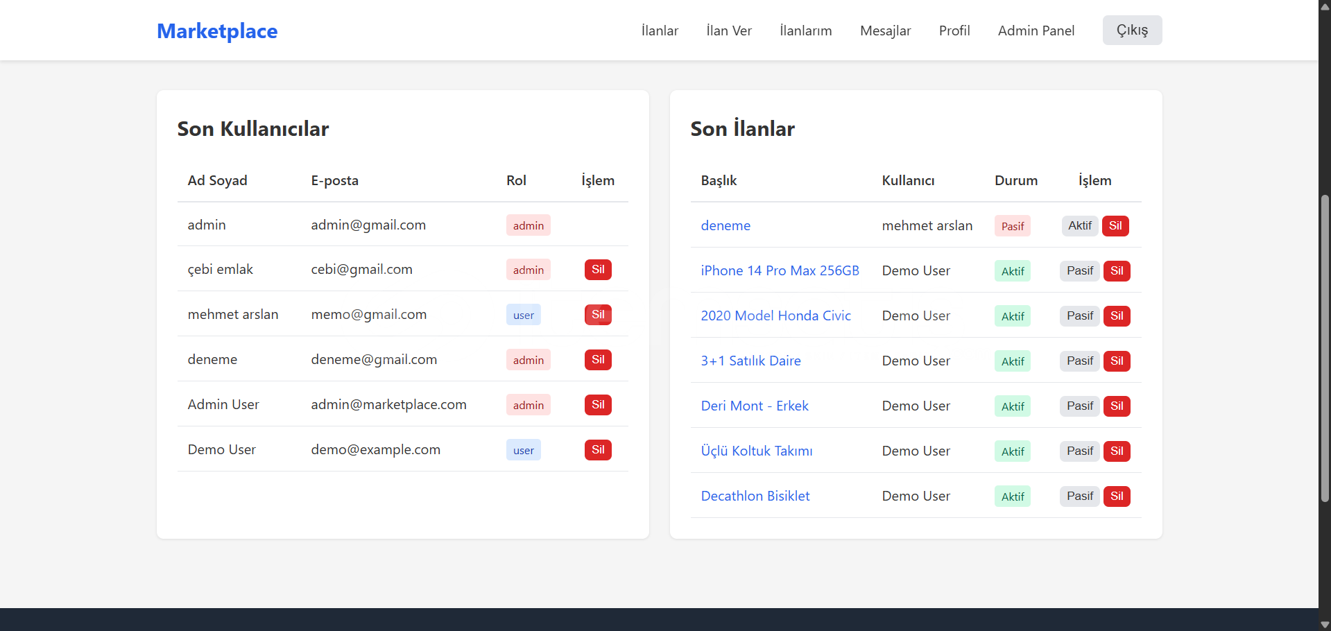 • İlan silme işlemleri