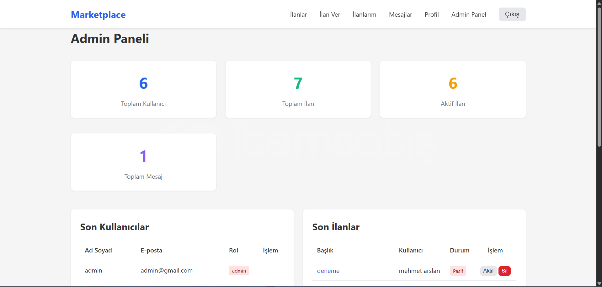 Satışa sunduğum bu web sitesi, ister doğrudan kullanılabilecek ister üzerine ek geliştirmeler yapılabilecek şekilde hazırlanmıştır. Temel altyapısı tamamlanmış olup, ilan–kullanıcı–mesajlaşma mantığına dayalı projeler için uygundur.