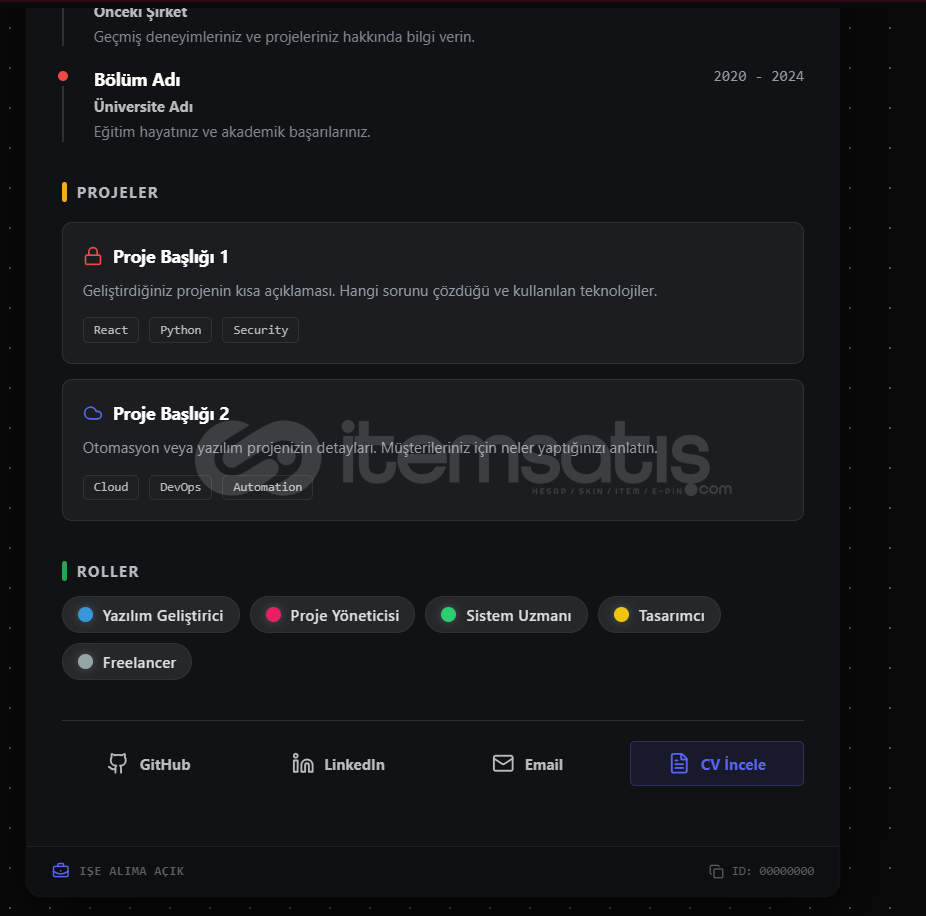 • 📂 Proje Kartları: GitHub projelerinizi veya çalışmalarınızı öne çıkarın.
