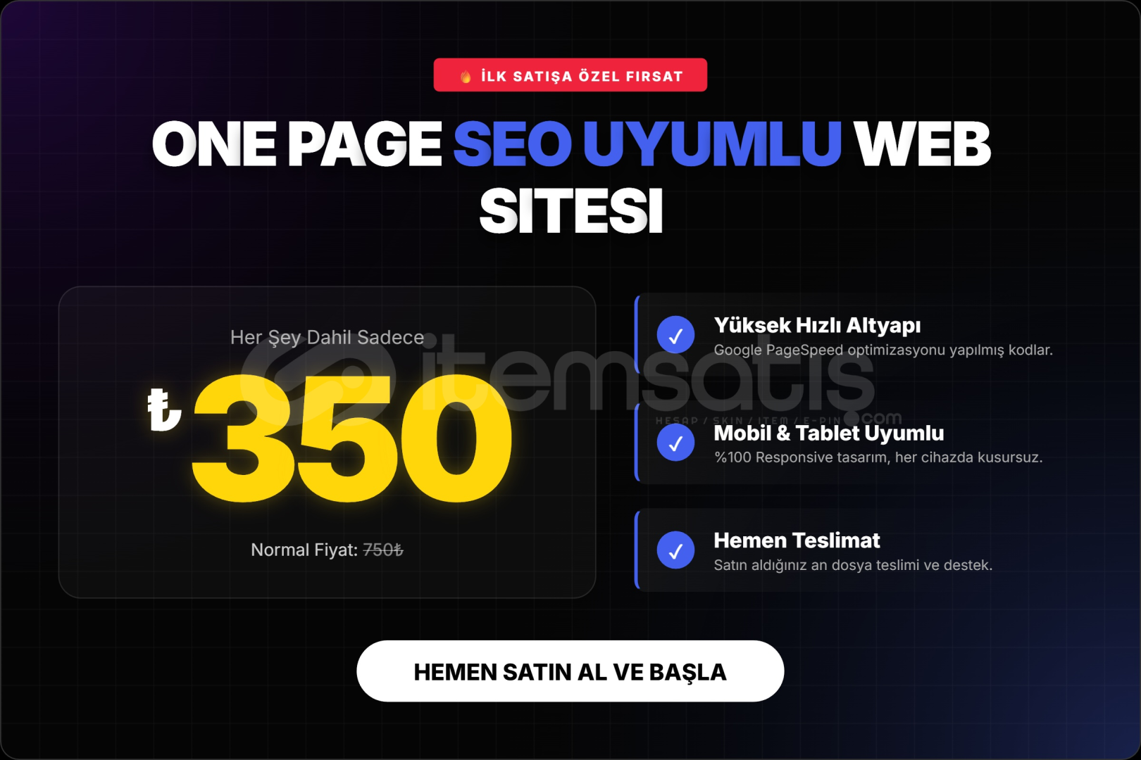 İlk Satışıma Özel 350₺ One Page SEO Uyumlu Site