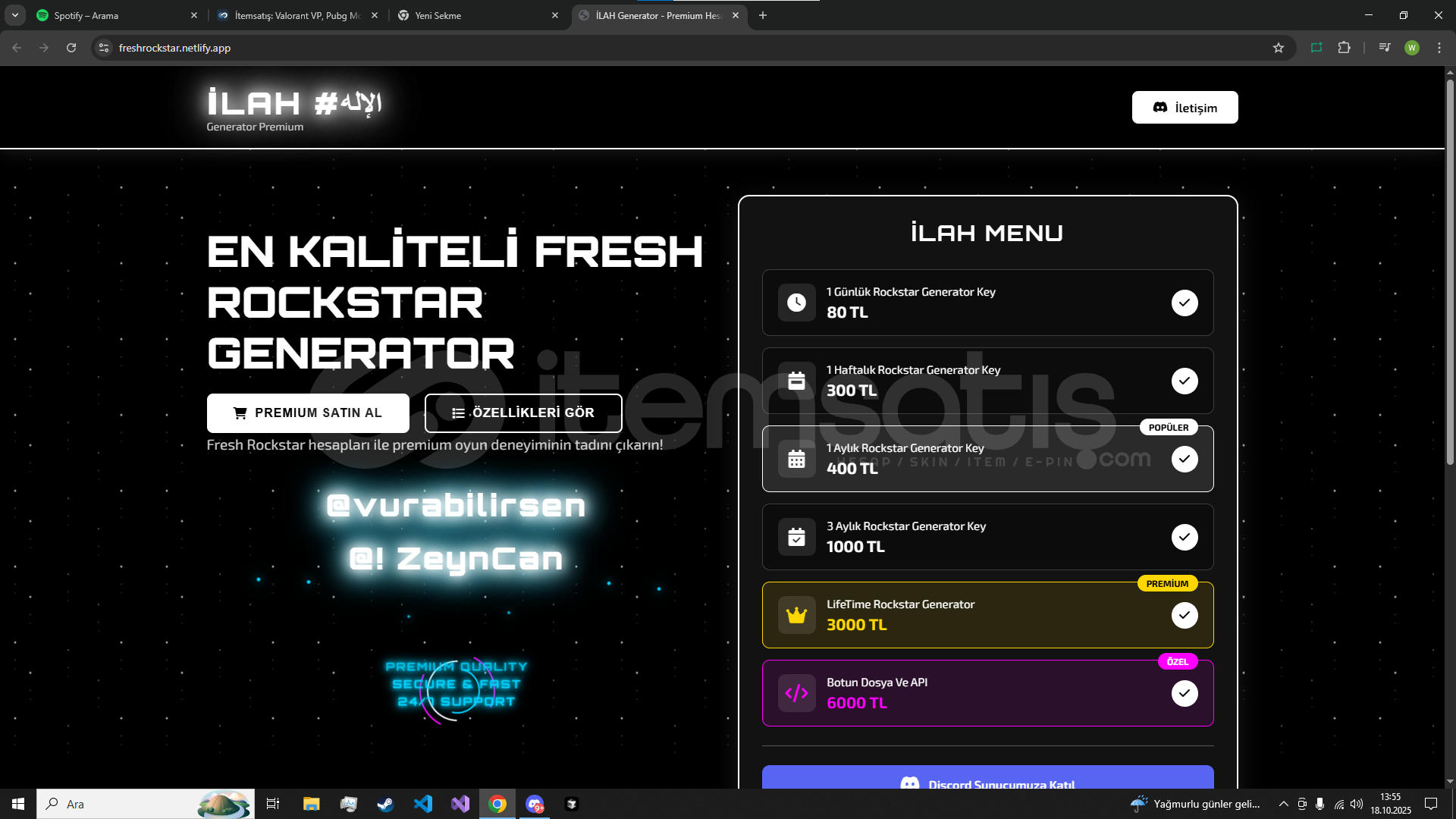 Hizmet İçeriği: SINIR YOKKK Tamamen size özel, sıfırdan tasarlanmış web siteleri.Dilerseniz kişisel, kurumsal, portföy, blog veya e-ticaret tarzında hazırlanabilir.İsteğe göre özel tasarım ögeleri, animasyonlar, renk temaları ve logo entegrasyonu eklenebilir.Teslim süresi: 1-3 gün (proje kapsamına göre değişebilir).Web siteniz mobil uyumlu (responsive) ve hız optimi...