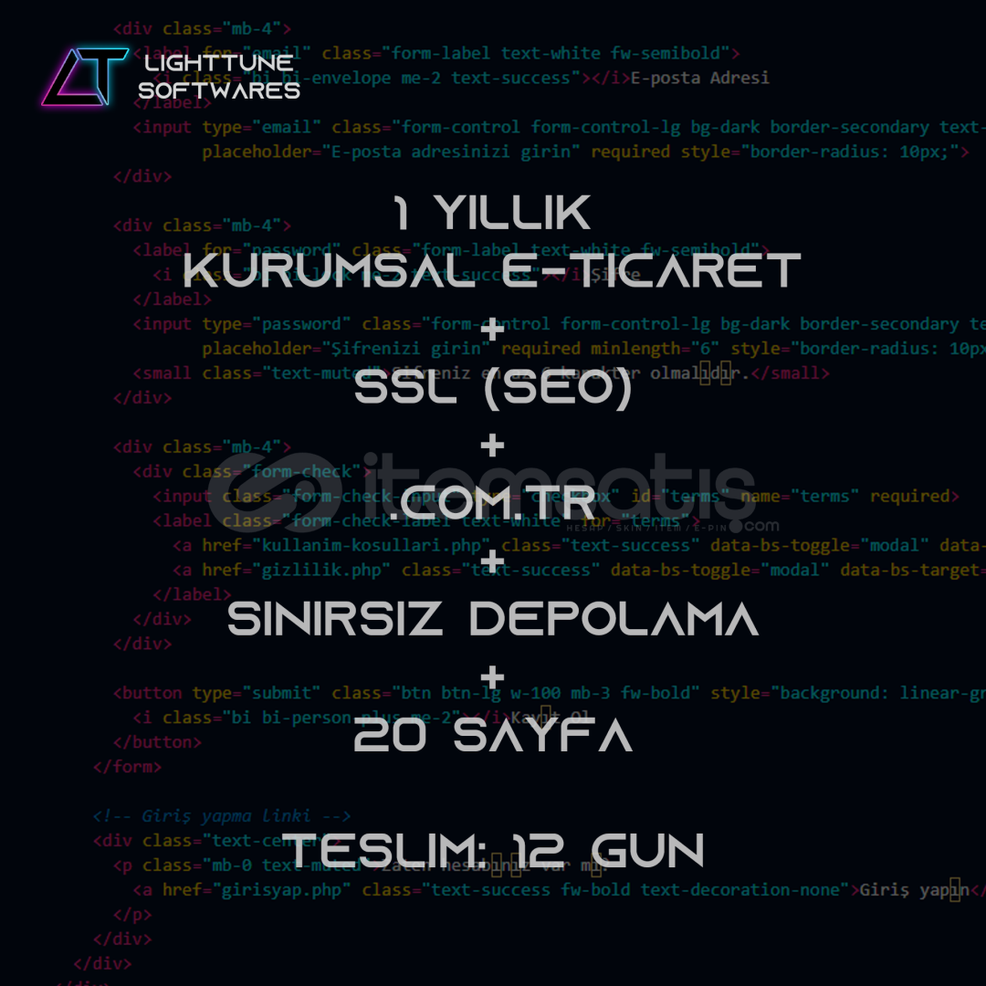 Kurumsal E-Ticaret Sitesi1 Yıllık SEO/SSL Güvenlik Sertifikasıİstediğiniz .com ya da .com.tr uzantılı domainSınırsız Trafik ve Depolama20 Sayfalı dinamik satış sitesiTeslimat süresi: 12-15 Gün
