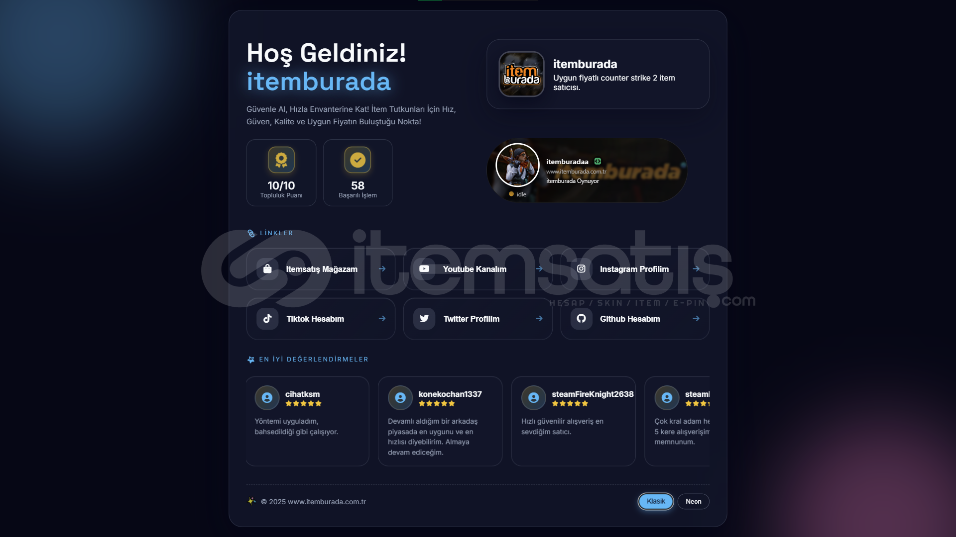 ★ Domain, Hosting gibi ek masraflarınız yoktur, hepsi bana ait. Ücretsiz domain olacağı için alan adınız şu şekilde olacaktır: https://mağazaisminiz.reklam.app
