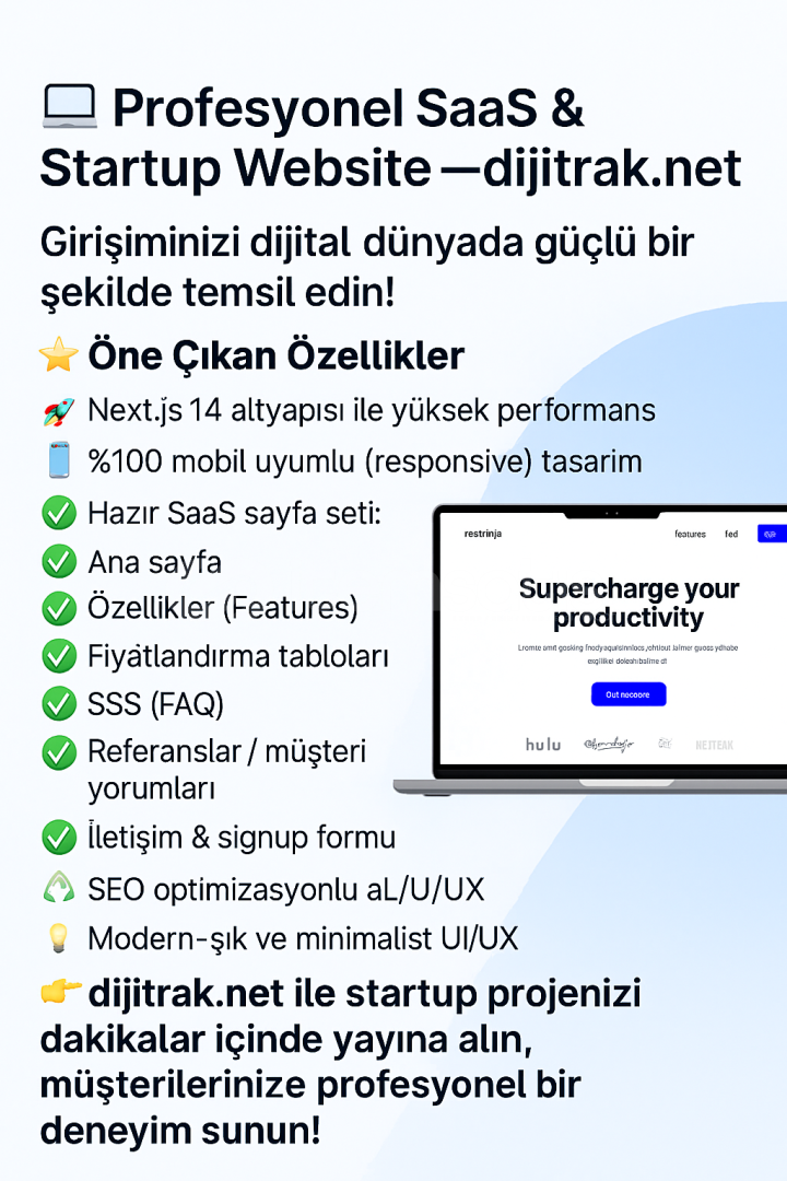 👉 dijitrak.net ile startup projenizi dakikalar içinde yayına alın, müşterilerinize profesyonel bir deneyim sunun!