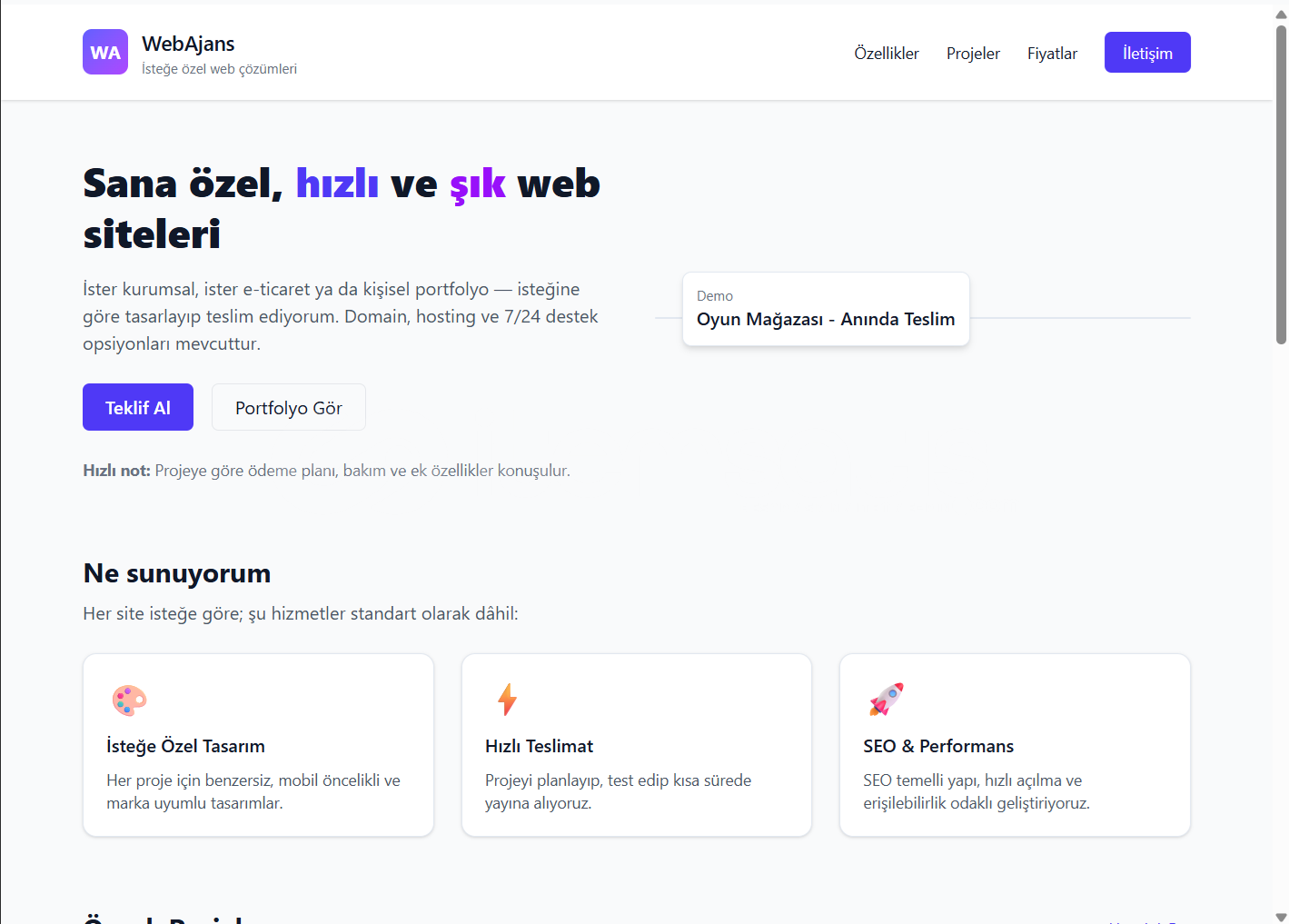İster işletme sitesi, ister kişisel portfolio, ister e-ticaret yapısına hazır vitrin site… Tümü özenle hazırlanır.