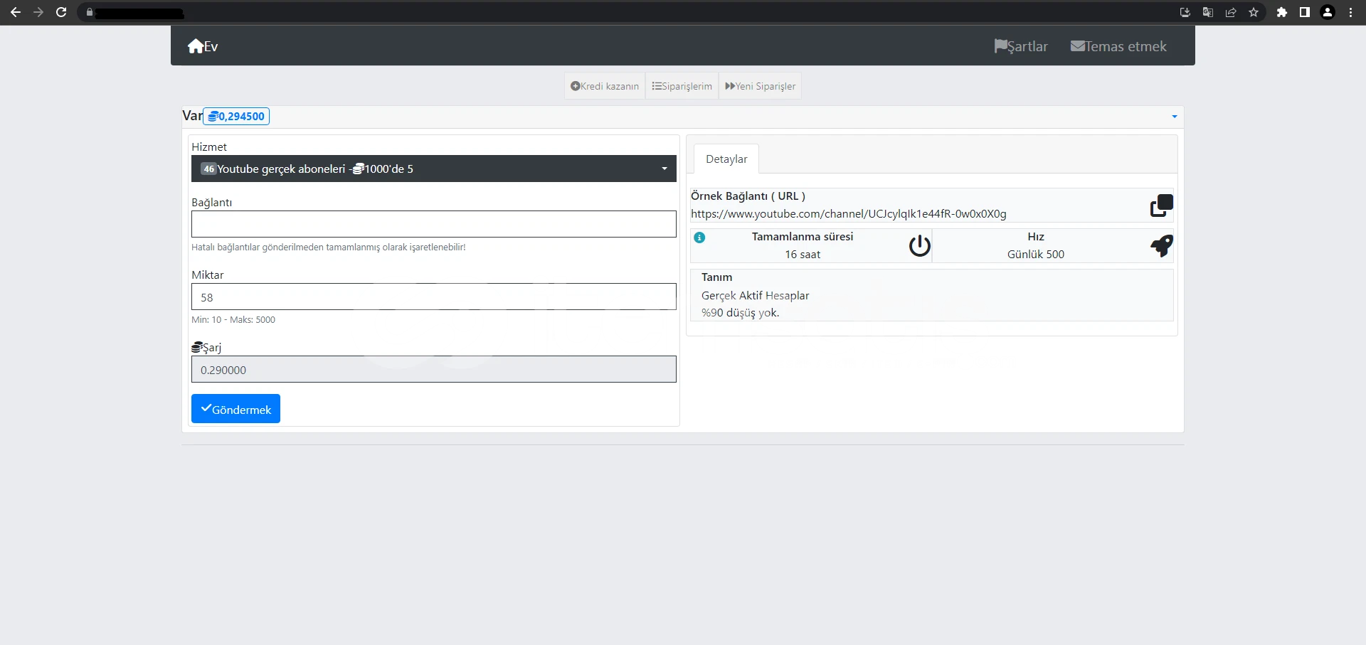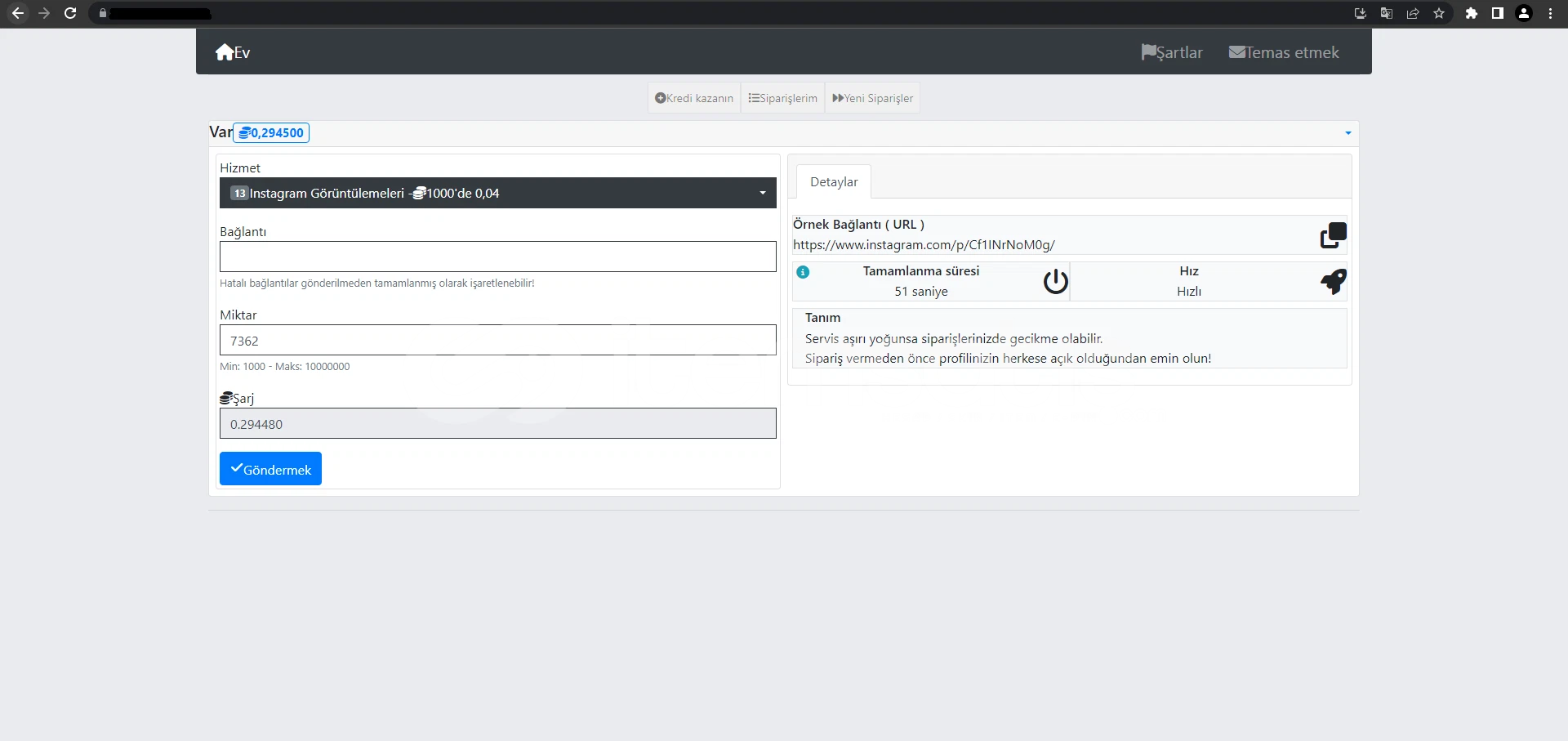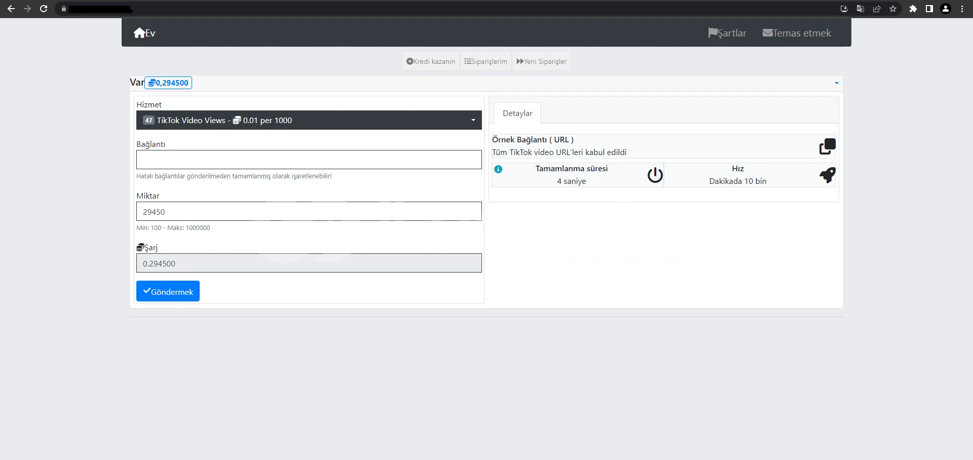 Siteden tiktok izlenme ve beğeni, instagram izlenme ve youtube abone atabilirsiniz.Jeton sayınıza bağlı olarak istediğiniz kadar beğeni, izlenme ve abone atabilirsiniz.Her 1 saatte 0.01 ücretsiz jeton toplayabilirsiniz.0.01 jeton 1 cent dolar değerindedir.İsterseniz kendinizde kriptoyla para yükleyebilirsiniz. (Minimum Yükleme 25 Dolar)Detaylı yazılı anlatım mevcuttur. (Kullanım)