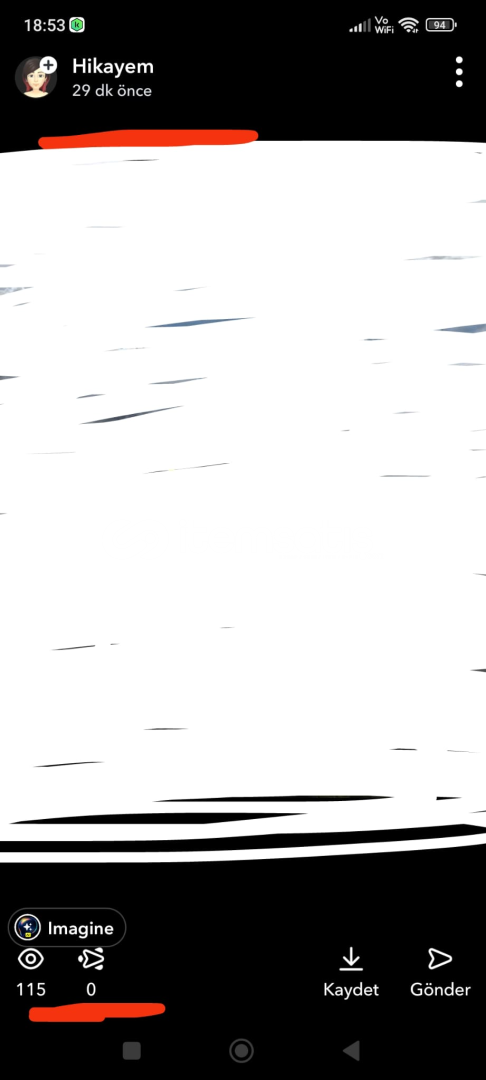 500 arkadaş mevcut, hikayeler ortalama 115 izlenme alıyor (30 dk içinde).