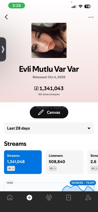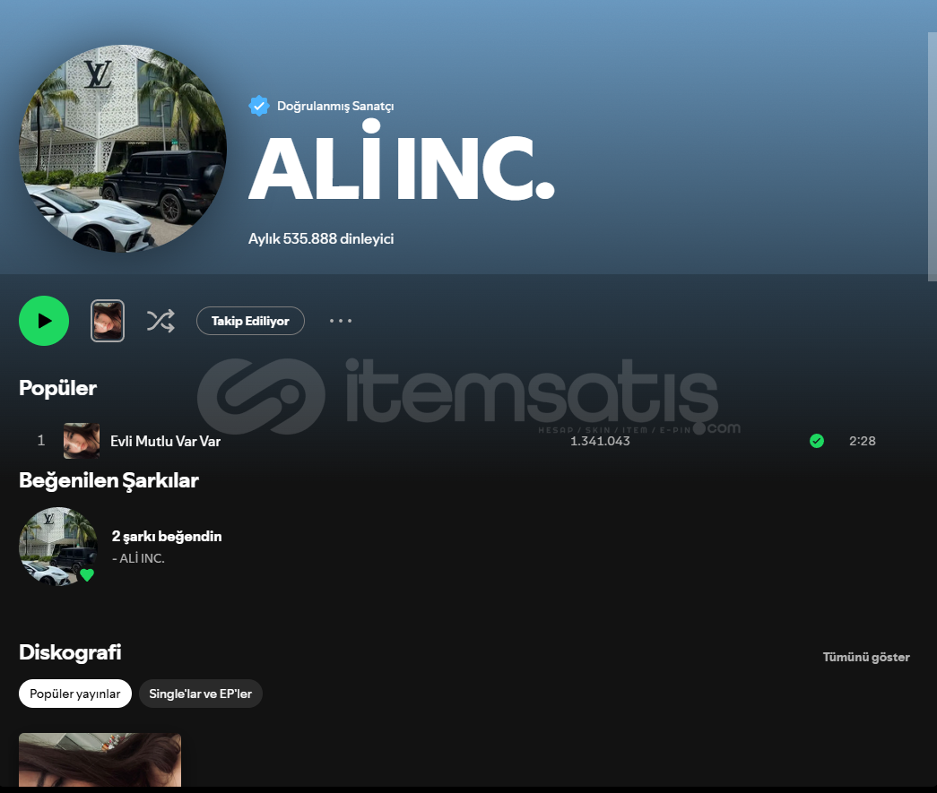 Aylık 600 Bin+ Dinleyicili Artist Hesabı