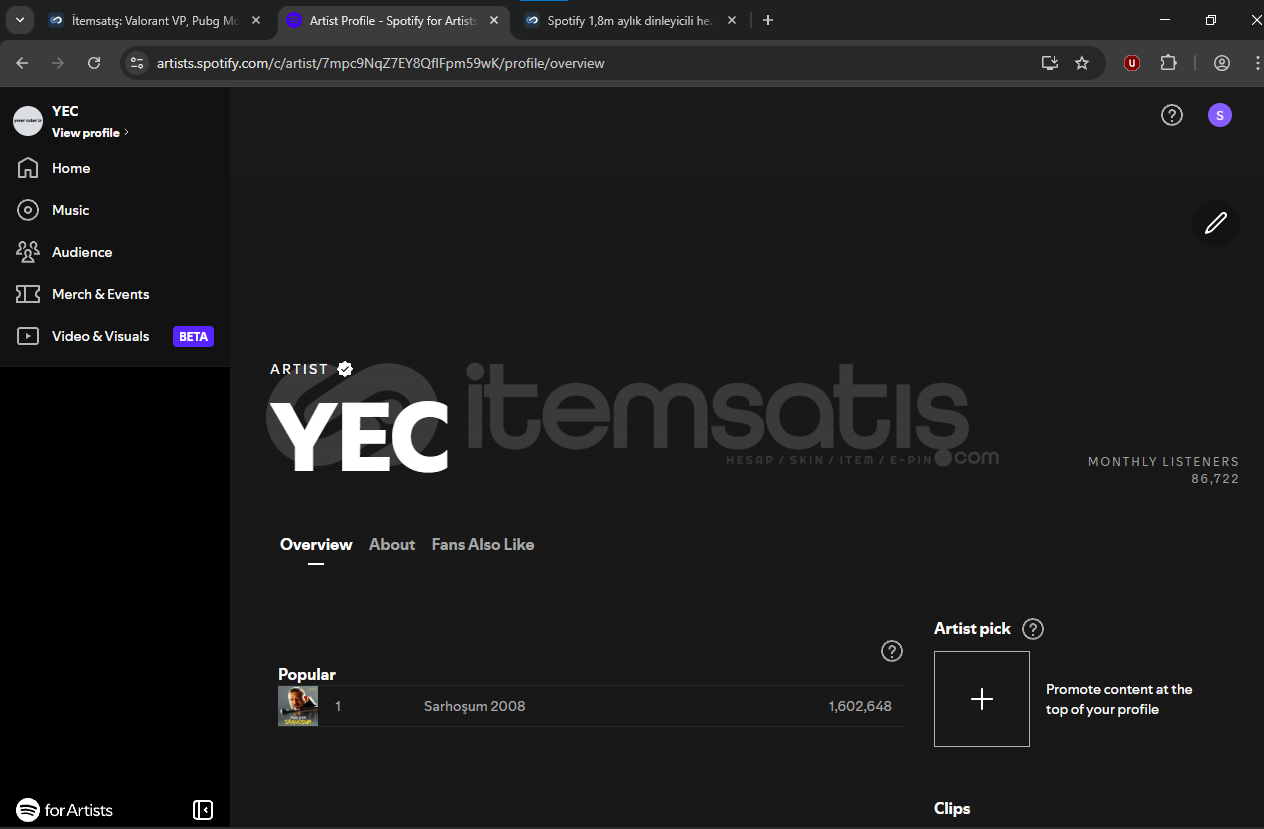 Hesap ve şarkı yener cevige aittir satın alıp şarkı yükleyip gelir elde edebilirsiniz.İLETİŞİM İÇİN DM.