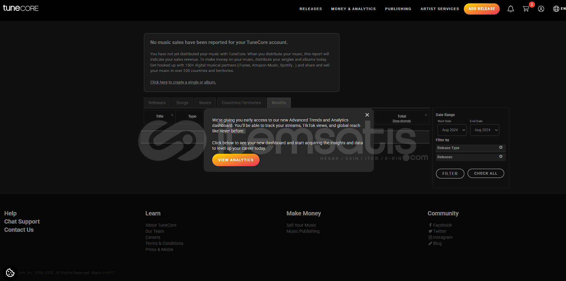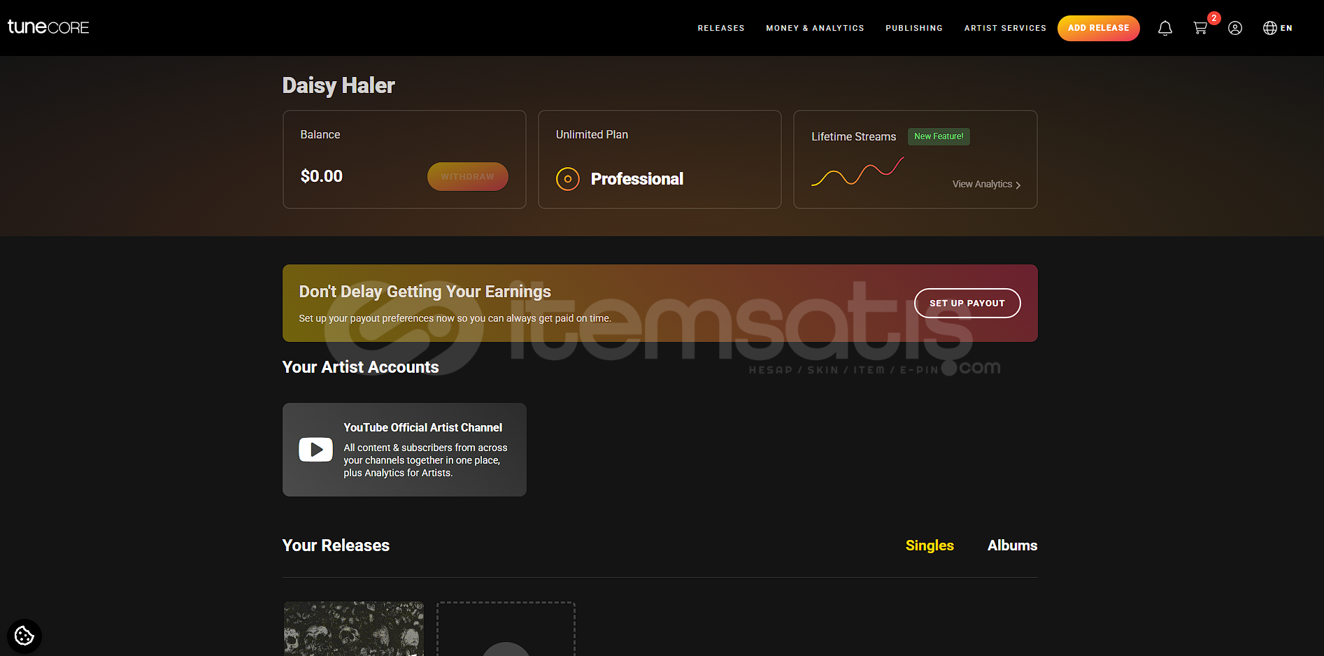 Tunecore distribütör hesabıdır sıfırdır professional plandır 50 dolara aldım kullanma fırsatım olmadı ilgilenenler olursa indirim bakılır normal fiyatı 2500 tl direkt olarak size vereceğim