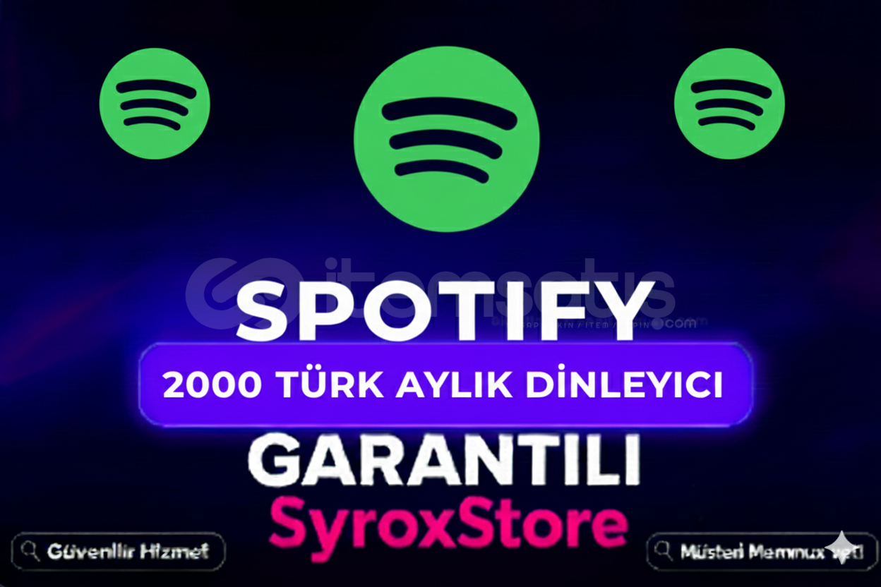 🎧 SyroxStore ile Spotify Kariyerinde Zirveye Çık!Müziğinizin hak ettiği dinleyici kitlesine ulaşmasını sağlayın! SyroxStore olarak, Spotify'da sanatçı profilinizi güçlendirecek garantili çözümler sunuyoruz.🎶 Müziğini Türk Dinleyiciyle Buluştur: 2000 TÜRK AYLIK DİNLEYİCİ GARANTİSİ!Gerçek Büyüme: Şarkıların...