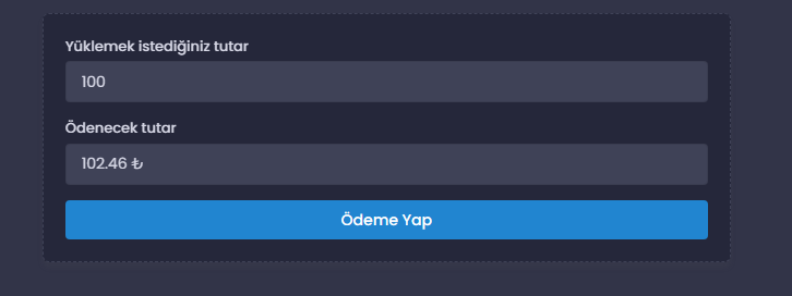 Yükleme yapmak istediğiniz tutarı girdiğinde aşağıda komisyonla birlikte kartınızdan çekilecek toplam tutar çıkacaktır.