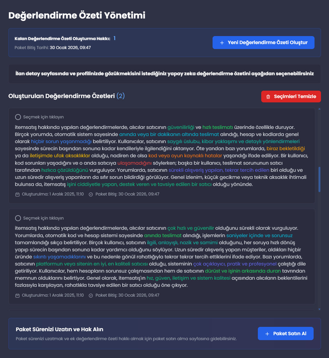 Satıcı Değerlendirme Özeti Nedir?