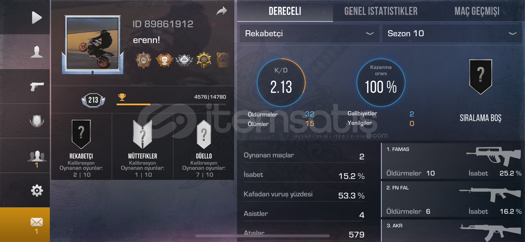 Standoff 2 kategorisinde Random Hesap ilanı oluşturmak yasaktır. Tespiti halinde ilanınız kapatılır ve 2. tekrarda hesabınız tamamen kapatılır.