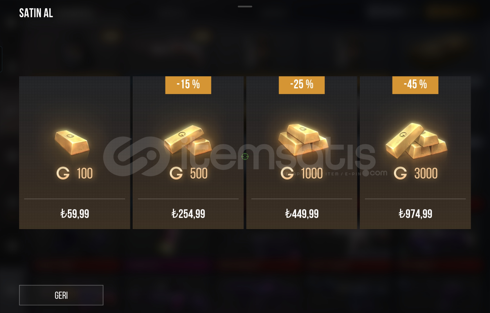 1000-3000 Gold arası için 100 Gold başına 42 TL