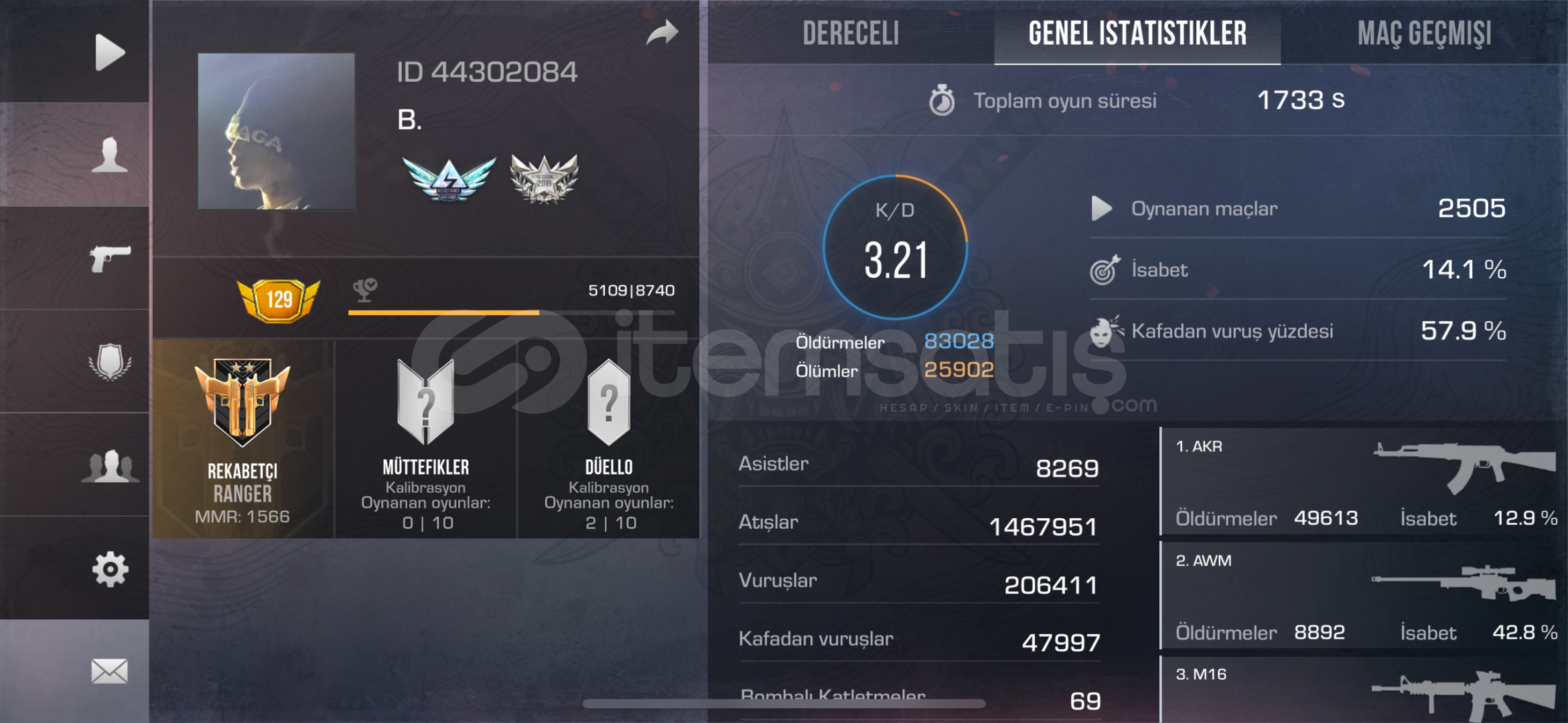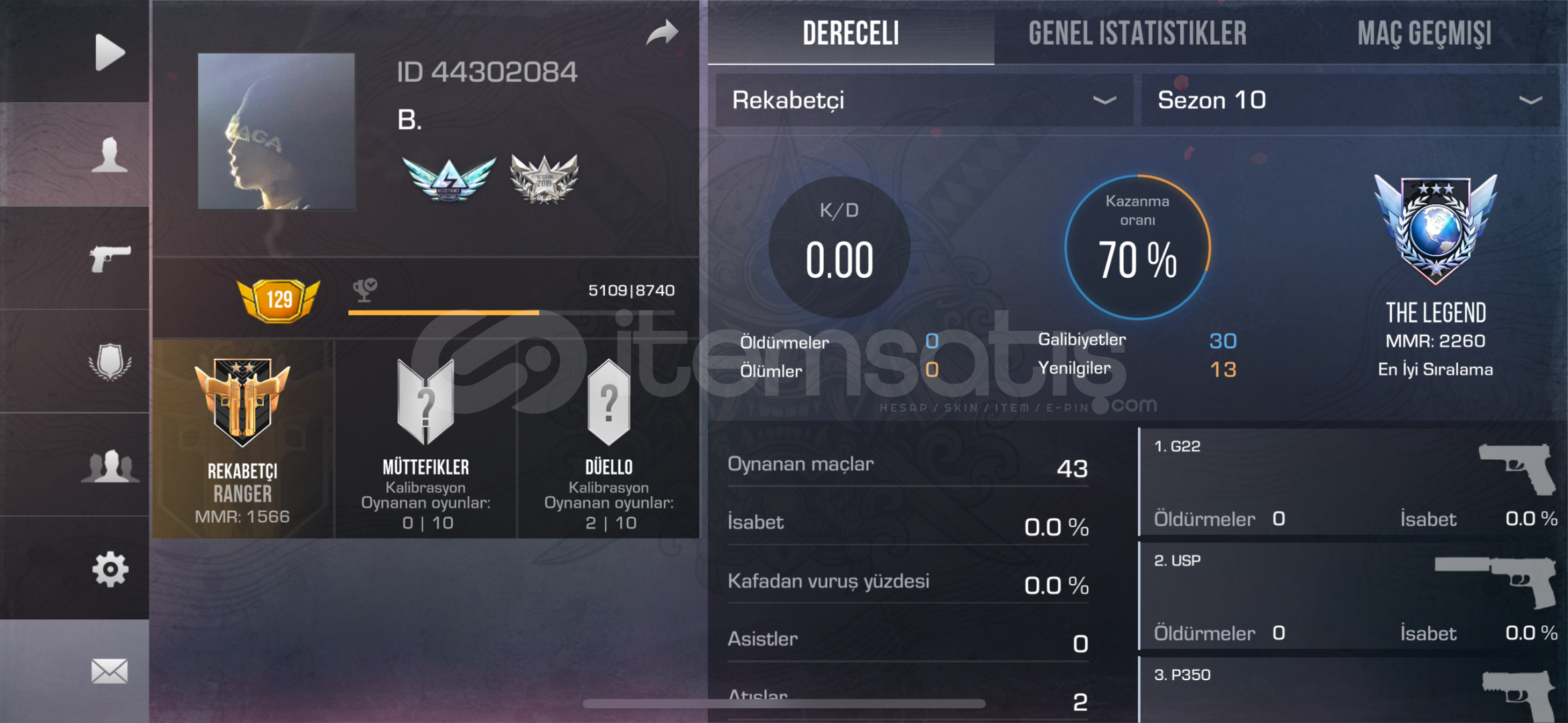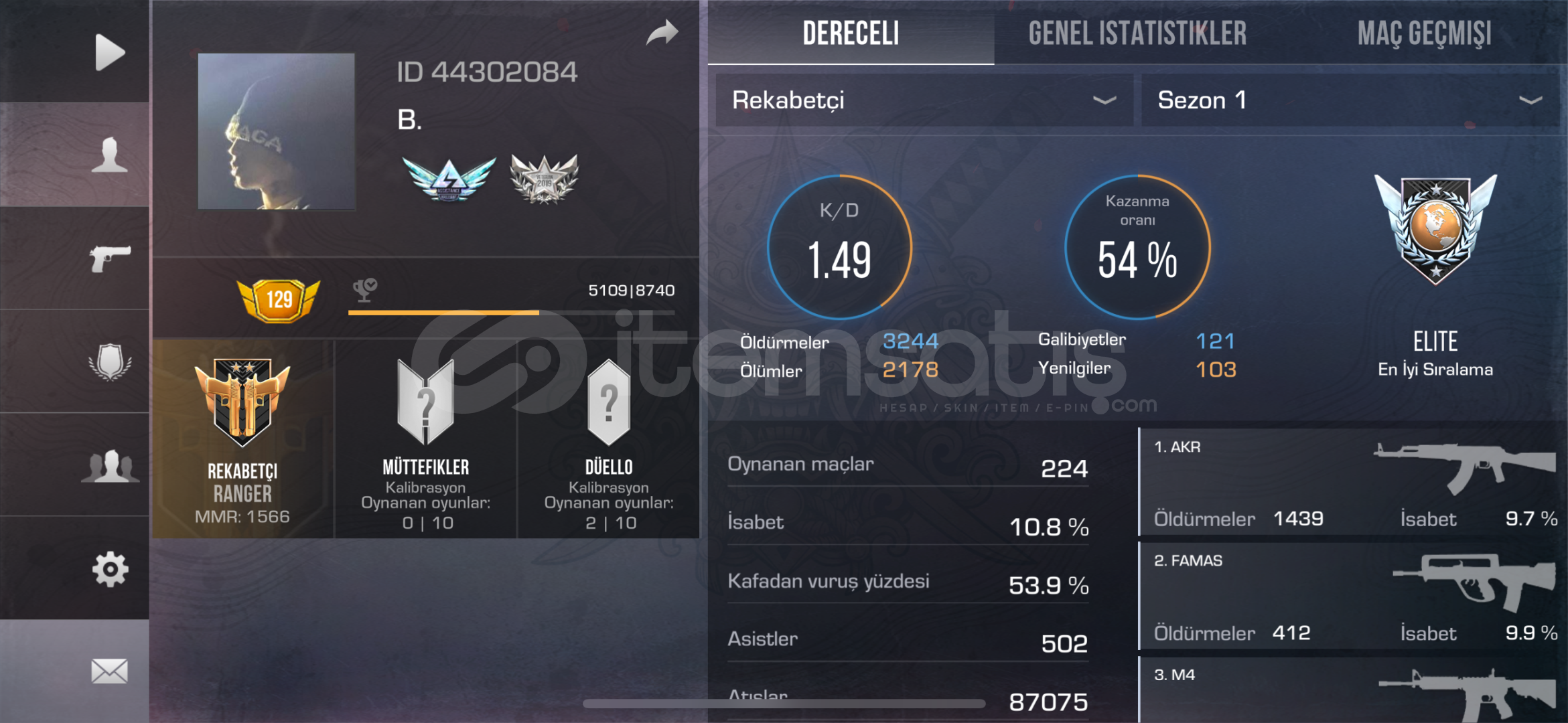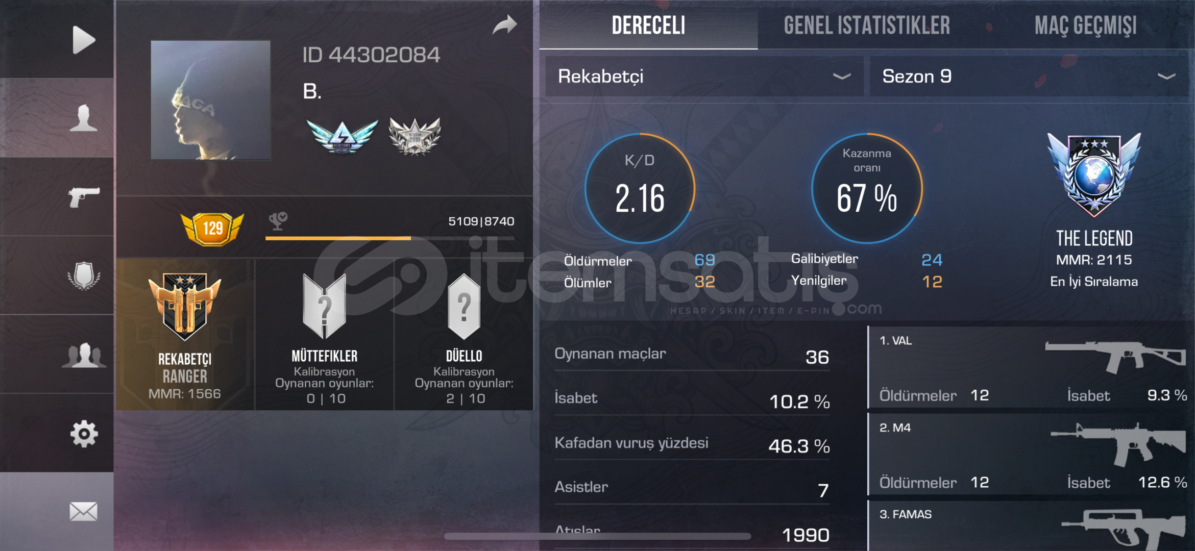 hesabim oyunun ilk hesaplarindandir 2017 den berı oynuyorum assistance madalya var 2019 madalya var ederi normalde daha fazla ama ben cok ucuza resmen bedavaya birakiyorum PC aldigim icin mobil oyunları saldım. ilk sezonlar elite sezon 10 ve sezon 9 legend ( hesapta ekstradan 6600 gold vardir ) ve degerli charmlarda mevcuttur o yüzden fiyatim son fiyattır ciddi alicilar yazsin yardimci olurum. Alıcısına şimdiden hayırlı uğurlu olsun