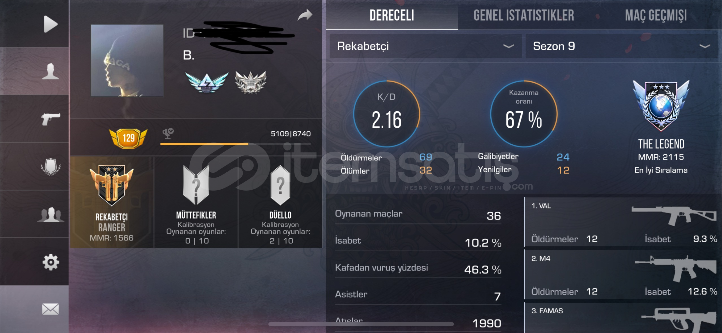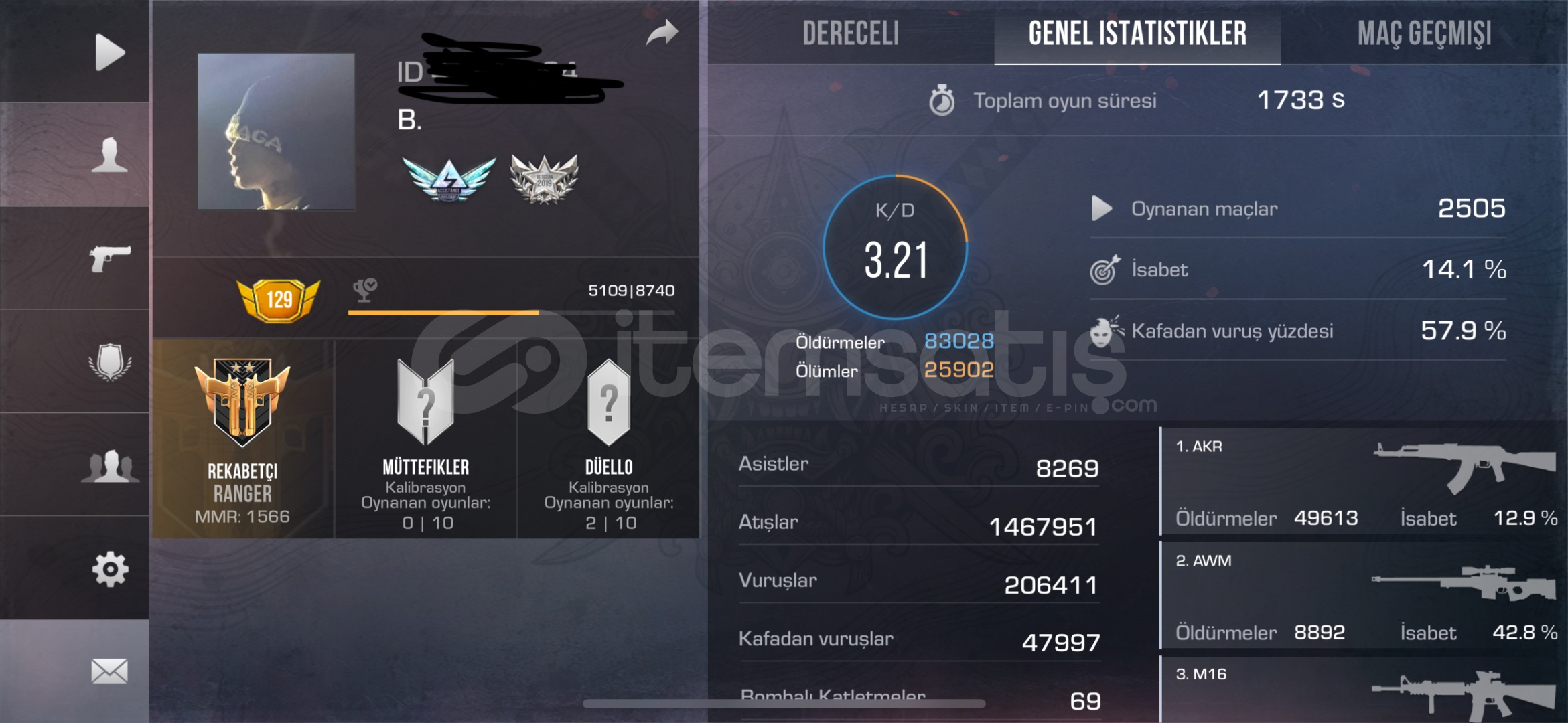 hesabim oyunun ilk hesaplarindandir 2017 den berı oynuyorum assistance madalya var 2019 madalya var ederi normalde daha fazla ama ben cok ucuza r...