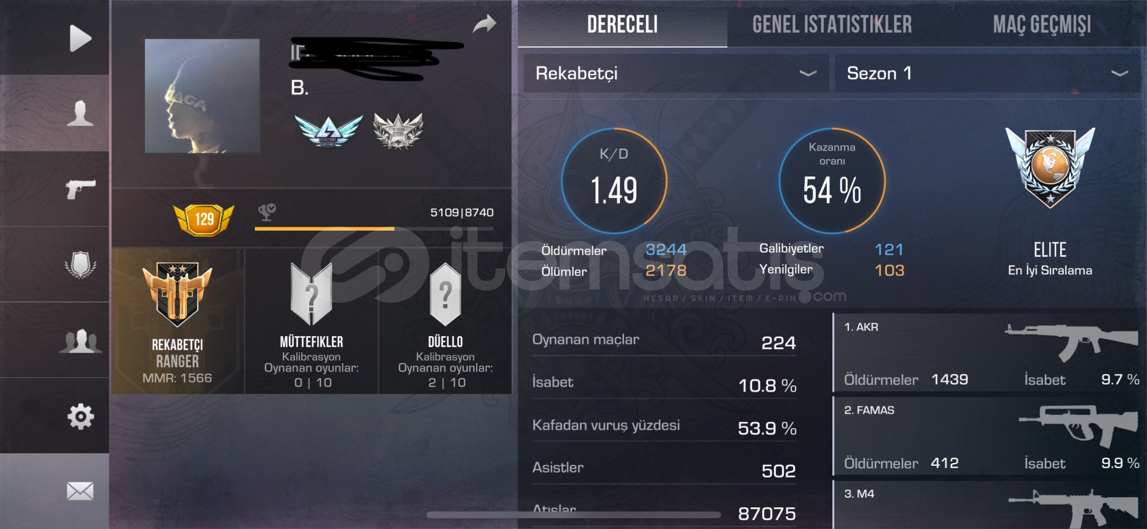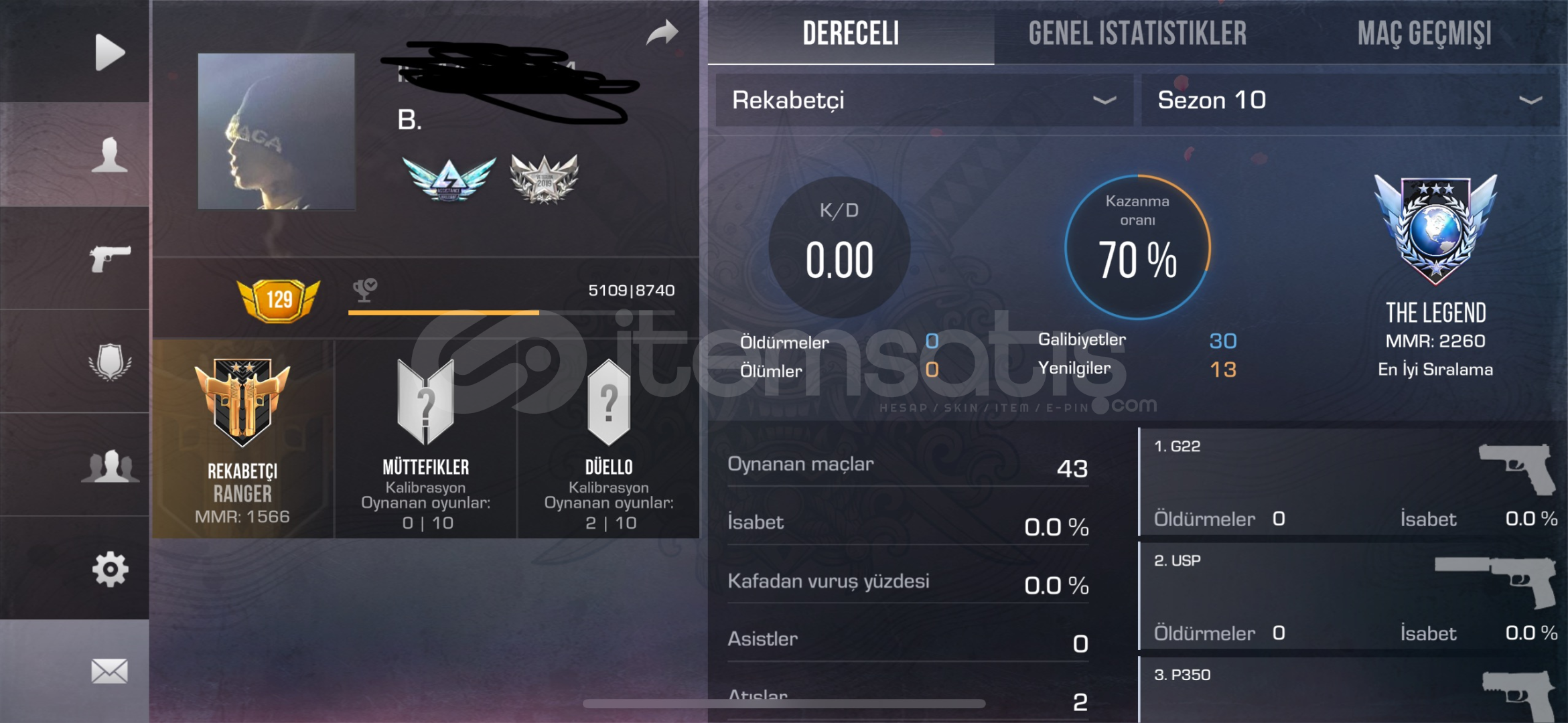 hesabim oyunun ilk hesaplarindandir 2017 den berı oynuyorum assistance madalya var 2019 madalya var ederi normalde daha fazla ama ben cok ucuza resmen bedavaya birakiyorum PC aldigim icin mobil oyunları saldım. ilk sezonlar elite sezon 10 ve sezon 9 legend ( hesapta ki goldlar satılmıştır ) ve degerli charmlarda mevcuttur o yüzden fiyatim son fiyattır ciddi alicilar yazsin yardimci olurum. Alıcısına şimdiden hayırlı uğurlu olsun