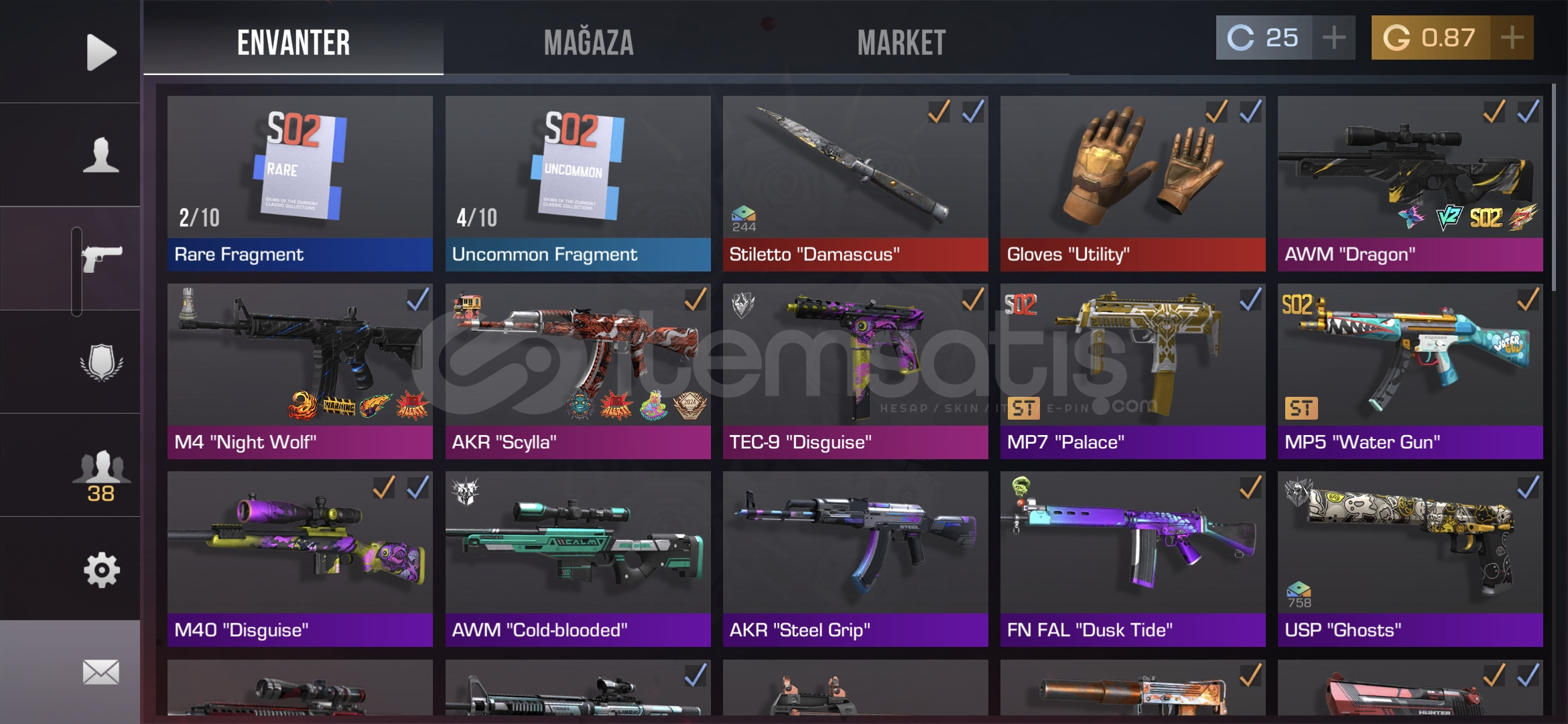 Hesap fotoğraflarda göründüğü gibidir sadece bazı küçük skinlerde dahildir. Hesap müttefiklerde the legendi görmüştür.