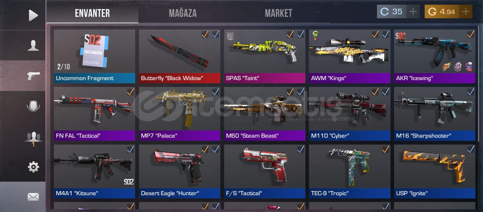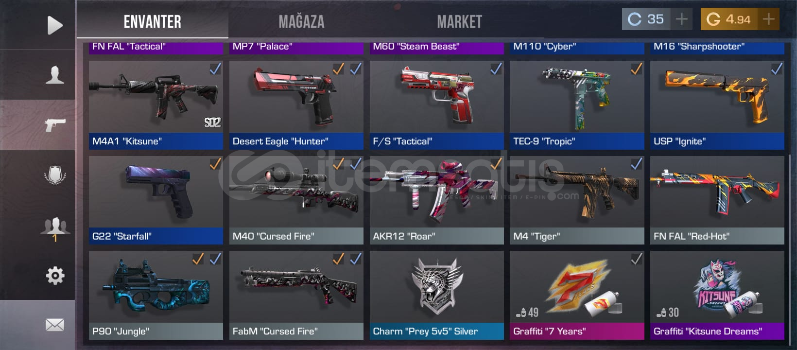 Tüm skinler orijinal oyun içi şekilde alınmıştır, herhangi bir ban/ceza yoktur.